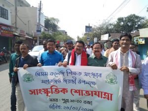 অসম কলেজ শিক্ষক সংস্থাৰ মহাৰজত জয়ন্তীৰ শুভাৰম্ভ অনুষ্ঠানৰ সাংস্কৃতিক শোভাযাত্ৰা, নগাওঁ মহাবিদ্যালয়ত