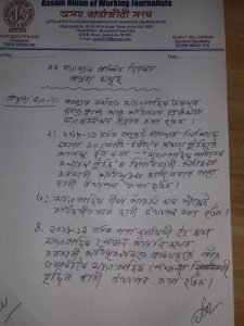 শতাব্দ ষ্টাফ ৰিপ’ৰ্টাৰ, ১৮ নৱেম্বৰঃ সাংবাদিক আৰু সংবাদকর্মীৰ ন্যায় আৰু অধিকাৰৰ সংগ্ৰাম তীব্ৰতৰ কৰা, সাংবাদিক পৰিয়াল কল্যাণ আঁচনিৰ অধীনত পৰিয়াল বাচনিৰ চৰকাৰী অধিসূচনা শীঘ্ৰে জাৰি কৰা, সাংবাদিকৰ জীৱন বীমা শীঘ্ৰে কাৰ্যকৰী কৰা আৰু সাংবাদিক পেঞ্চনাৰৰ সংখ্যা বৃদ্ধি কৰা আদি চাৰিটা প্ৰস্তাব আজি অসম বার্তাজীৱী সংঘৰ ৪৯ সংখ্যক প্রতিষ্ঠা দিৱসত গ্ৰহণ কৰা হয়।