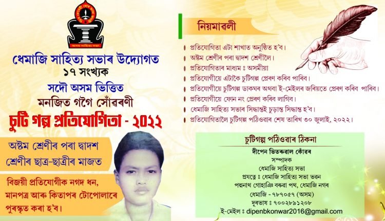 অসম ভিত্তিত ছাত্ৰ-ছাত্ৰীৰ মাজত গল্প প্ৰতিযোগিতাৰ আয়োজনঅসমট্ৰেণ্ডিংসাহিত্য By শতাব্দ On Jun 27, 2022 0 56 শ্বেয়াৰ কৰক 0 56 শ্বেয়াৰ কৰক FacebookTwitterGoogle+ReddItWhatsAppPinterestইমেইল