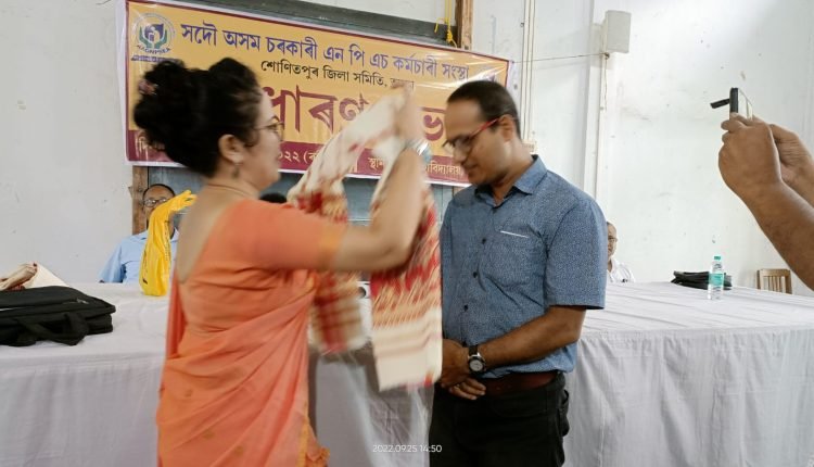 শতাব্দ প্ৰতিনিধি তেজপুৰ, ২৫ছেপ্টেম্বৰঃ আজি দিনৰ দুই বজাৰ পৰা তেজপুৰৰ ঐতিহ্যমণ্ডিত দৰং মহাবিদ্যালয়ৰ একনম্বৰ গেলাৰীত সদৌ অসম চৰকাৰী এন পি এছ কৰ্মচাৰী সংস্হাৰ শোণিতপুৰ জিলা সমিতিৰ এখন সাধাৰণ সভা অনুষ্ঠিত হৈ যায়। সভাখনত সভাপতিত্ব কৰে সংস্হাৰ ৰাজ্যিক সভাপতি তথা শোণিতপুৰ জিলা সমিতিৰ সভাপতি ড° মনোজ কুমাৰ হাজৰিকাই। সভাত তেজপুৰ জিলা কৰ্মচাৰী পৰিষদৰ সভাপতি ৰঞ্জিত বৰঠাকুৰ আৰু পৰিষদৰ সাধাৰণ সম্পাদক ফখৰুদ্দিন আহমেদ, তেজপুৰ জিলা মধ্য ইংৰাজী শিক্ষক সংস্হাৰ সাধাৰণ সম্পাদক প্ৰসন্ন ৰাভা, তেজপুৰ মহকুমাৰ প্ৰাথমিক শিক্ষক সন্মিলনী সভাৰ সাধাৰণ সম্পাদক অবনী বৰা আৰু শোণিতপুৰ জিলা সাহিত্য সভাৰ সাধাৰণ সম্পাদক দুলাল নাথ উপস্থিত থাকে। সভাৰ উদ্দেশ্য ব্যাখ্যা কৰে সংস্হাৰ সাধাৰণ সম্পাদক ৰাজ কমল দাসে। সভাত অহা আঠ নবেম্বৰত সংস্হাৰ কেন্দ্ৰীয় সমিতিৰ যৌথ মঞ্চই গ্ৰহণ কৰা “দিছপুৰলৈ পুৰণি পেঞ্চন প্ৰাপ্তিৰ পদযাত্ৰা আৰু প্ৰতিবাদী কাৰ্যসূচী”ক আদৰণি জনায়। সভাত এই কাৰ্যসূচী কেনেদৰে সফল ৰূপায়ন কৰিব পৰা যাব, সেই সন্দৰ্ভত চিন্তা চৰ্চা কৰাৰ লগতে বিশেষ ভাবে আলোচনা কৰা হয়। তেজপুৰ জিলা মধ্য ইংৰাজী শিক্ষক সংস্হাৰ সাধাৰণ সম্পাদক প্ৰসন্ন ৰাভাই আজিৰ সভাতে তেওঁলোকৰ সংস্হাৰ তৰফৰ পৰা পৰিকল্পিত পদযাত্ৰা কাৰ্যসূচীৰ বাবে পাঁচ হেজাৰ টকাৰ বৰঙণি আগবঢ়োৱাৰ কথা ঘোষণা কৰে। আজিৰ সভাত ড° মনোজ কুমাৰ হাজৰিকাক পুনৰ সংস্হাৰ সভাপতি আৰু চন্দন আচাৰ্যক সাধাৰণ সম্পাদক হিচাপে লৈ ২৫ জনীয়া শোণিতপুৰ জিলাৰ নতুন কাৰ্যনিৰ্বাহক সমিতিখন গঠন কৰা হয়। সভাত সংস্হাৰ চাৰিখন আঞ্চলিক সমিতি ক্ৰমে তেজপুৰ, ঢেকিয়াজুলি, ৰঙাপাৰা আৰু জামুগুৰিৰ সভাপতি তথা সম্পাদক আদি কৰি শতাধিক এন পি এছ শিক্ষক কৰ্মচাৰীয়ে অংশগ্ৰহণ কৰে।