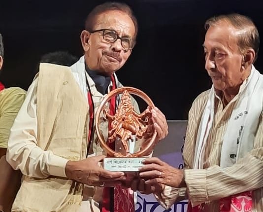 নাট্য আন্দোলনৰ অন্যতম সাধক চৈয়দ নাজিম আহমেদক বাণ থিয়েটাৰ বটাঁ প্ৰদান
