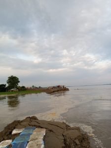 মথাউৰিৰ ছিগা অংশৰে হোৰাহোৰে পানী সোমোৱাৰ ফলত সমগ্ৰ অঞ্চলটোত আজি বিয়লি এক আতংকময় পৰিস্থিতিৰ সৃষ্টি হয়৷ নদীখনৰ প্ৰবল সোঁত আৰু ঢলে নিমিষতে নিকটৱৰ্তী গাঁৱৰ ঘৰ-বাৰী, খেতি-পথাৰ বুৰাই পেলোৱাত সমগ্ৰ অঞ্চলটোত অভাৱনীয় পৰিস্থিতিৰ সূচনা হয়৷ উল্লেখ্য যে আজি দিনৰ প্ৰায় ৩ বজাত সোৱণশিৰি নদীয়ে ভীমপৰা মথাউৰিটোৰ এক বৃহৎ অংশ বিছিন্ন কৰি বৃহত্তৰ তেলাহী অঞ্চলটোৰ বহু গাঁও জলমগ্ন কৰে৷ আজি সোৱণশিৰিৰ নদীৰ প্ৰচণ্ড সোঁতে মথাউৰিটো বিছিন্ন কৰাৰ পাছত ৰাইজৰ মাজত হাহাকাৰ পৰিস্থিতিৰ সৃষ্টি হয় আৰু মথাউৰিৰ দাঁতি কাষৰীয়া লোকসকল নিৰাপদ স্থানলৈ ঢাপলি মেলে৷ তেওঁলোকে নিজৰ বয় বস্তু, তালি টোপোলা বান্ধি নিৰাপদ স্থানলৈ স্থানান্তৰিত হয়৷ লক্ষণীয় কথা যে বিগত এটা পষেক ধৰি সোৱণশিৰিৰ ভয়াৱহ খহনীয়াৰ কবলত পৰি ভীমপৰা মথাউৰিটো ন-আলি ঘনচৰাইত সোৱণশিৰিৰ বুকুত জাহ যাবলৈ ধৰে৷ লখিমপুৰৰ জলসম্পদ বিভাগ, জিলা প্ৰশাসনে যুদ্ধংদেহি তৎপৰতাৰে খহনীয়া প্ৰতিৰোধেৰে মথাউৰিটো সুৰক্ষাৰ বাবে সকলো প্ৰচেষ্টা চলাইছিল যদিও শেহতীয়াকৈ হৈ থকা ধাৰাষাৰ বৰষুণৰ ফলত আজি মথাউৰিটো বিছিন্ন হয়৷ প্ৰাপ্ত তথ্য মতে সোৱণশিৰি নদীয়ে মথাউৰি বিছিন্ন কৰাৰ ফলত অঞ্চলটোৰ ১৩টা পৰিয়ালৰ লগতে ১৬ খনকৈ ব্যৱসায়িক প্ৰতিষ্ঠান লখিমপুৰ জিলা প্ৰশাসনে ইতিপূৰ্বে নিৰাপদ স্থানলৈ স্থানান্তৰিত কৰে৷ সম্প্ৰতি উক্ত ভগ্ন মথাউৰিত জিলা প্ৰশাসন, এছ ডি আৰ এফ বাহিনী অভিযানত নামি পৰিছে৷ ইফালে সোৱণশিৰিয়ে ঘনচৰাইত মথাউৰি বিছিন্ন কৰাৰ পিছত তেলাহী মৌজাৰ বিভিন্ন গাঁও প্লাবিত হোৱাৰ সম্ভাৱনা প্ৰকট হৈ পৰিছে৷ আজি মথাউৰি ছিঙি নিয়াৰ ফলত আৰু উক্ত ছিঙা অংশৰে সোমোৱা সোৱণশিৰিৰ পানীয়ে ৩ নং ন-আলি কৈৱত্ত, ১ আৰু ২নং খগা চন্দপুৰ, ৰন্তিজান আদি গাঁও জলমগ্ন কৰাত ৰাইজৰ মাজত হাহাকাৰ পৰিস্থিতিৰ সৃষ্টি হৈছে৷ ছিগা অংশৰে প্ৰচণ্ড জোৰেৰে পানী সোমাই অহাৰ ফলত সমগ্ৰ অঞ্চলটোত একপ্ৰকাৰে আতংকৰ সৃষ্টি হৈছে৷ বহুতে আকৌ নিজৰ পশুধন সমূহক ওখ স্থানলৈ স্থানান্তৰিত কৰিছে৷ আহিনমহীয়া অবাঞ্চিত বানৰ কবলত পৰা একাংশ কৃষকে এতিয়া মূৰে কপালে হাত দিব লগা পৰিস্থিতিৰ উদ্ভৱ হৈছে৷ উল্লেখনীয় কথা যে নামনি সোৱণশিৰি জলবিদ্যুৎ প্ৰকল্পৰ পানীয়েও ভীমপৰা মথাউৰিত খুন্দা মৰাৰ ফলতো মথাউৰিটো বিছিন্ন হোৱাত অৰিহণা যোগায়৷