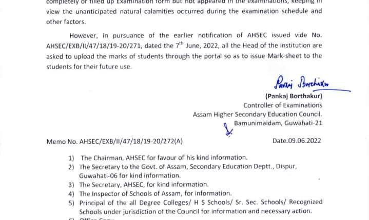 শতাব্দ প্ৰতিনিধি, গুৱাহাটী,৯ জুনঃ পুনৰ পৰীক্ষা অনুষ্ঠিত নকৰাকৈ শিক্ষাৰ্থীক উত্তীৰ্ণ কৰোৱাৰ সিদ্ধান্ত ৰাজ্যৰ শিক্ষা বিভাগৰ। অসম উচ্চতৰ মাধ্যমিক শিক্ষা সংসদৰ বামুণীমৈদামস্থিত মুখ্য কাৰ্যালয় পৰা প্ৰেৰণ কৰা এক জাননীৰ জৰিয়তে উচ্চতৰ মাধ্যমিকৰ প্ৰথম বৰ্ষৰ সকলো শিক্ষাৰ্থীকে দ্বিতীয় বৰ্ষলৈ উত্তীৰ্ণ কৰোৱাবলৈ এক নিৰ্দেশনা প্ৰদান কৰা হৈছে। পৰীক্ষা নিয়ন্ত্ৰক পংকজ বৰঠাকুৰে স্বাক্ষৰ কৰা পত্ৰখনৰ জৰিয়তে সকলো শিক্ষানুষ্ঠানৰ মূৰব্বীকে প্ৰথম বৰ্ষৰ ছাত্ৰ-ছাত্ৰীসকলক দ্বিতীয় বৰ্ষলৈ উত্তীৰ্ণ কৰোৱাৰ বাবে নিৰ্দেশনা দিছে। পত্ৰখনত কোৱা হৈছে যে শিক্ষাৰ্থীসকলে পৰীক্ষাৰ বাবে প্ৰ-পত্ৰ পূৰণ কৰিছিল যদিও প্ৰাকৃতিক দুৰ্যোগ আৰু অন্যান্য কাৰণৰ বাবে পৰীক্ষাত অৱতীৰ্ণ হ’ব নোৱাৰিলে। সেয়েহে তেওঁলোক সকলোকে উত্তীৰ্ণ কৰাব লাগে। আনহাতে সকলো শিক্ষানুষ্ঠানৰ মুৰব্বীকে শিক্ষাৰ্থীসকলৰ পূৰ্বৰ পৰীক্ষাৰ নম্বৰসমূহ সংসদৰ পৰ্টেলত অন্তৰ্ভুক্ত কৰিবলৈ নিৰ্দেশ দিয়া হৈছে, যাতে শিক্ষাৰ্থীসকলৰ বাবে মাৰ্কশ্বিট তৈয়াৰ কৰিব পাৰে।