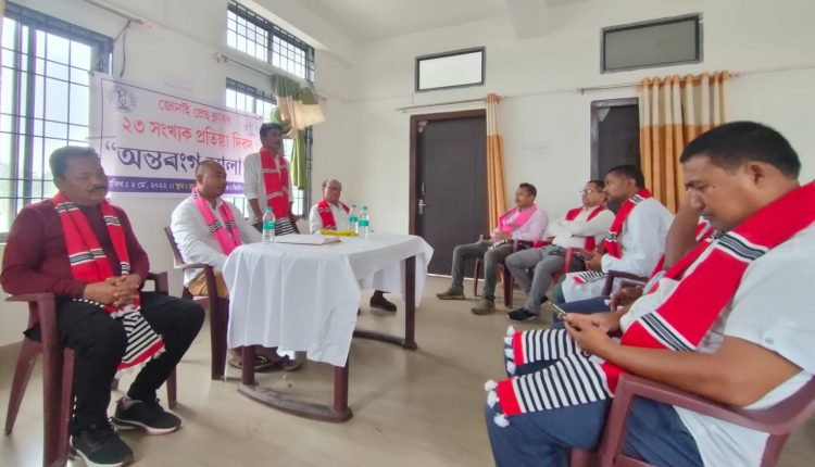 জোনাই, ২ মে’ : ঐতিহ্যমণ্ডিত জোনাই প্ৰেছ ক্লাৱৰ গৌৰৱোজ্জ্বল ২৩ সংখ্যক প্ৰতিষ্ঠা দিৱস আজি বিয়লি ঙাচাৰচুক উকোমত গাম্ভীৰ্যপূৰ্ণ পৰিবেশত উদযাপনৰ কৰা হয়। প্ৰথমতে জোনাই প্ৰেছ ক্লাৱৰ প্ৰতিষ্ঠাৰ পৰা আৰম্ভ কৰি এক গৰিমাময় মৰ্যাদা প্ৰদান কৰা জোনাই প্ৰেছ ক্লাৱৰ প্ৰাক্তন সভাপতি প্ৰয়াত চুছেন পাৱ, প্ৰাক্তন উপদেষ্টা প্ৰয়াত ডিৰাম কুম্বাং, প্ৰাক্তন উপদেষ্টা প্ৰয়াত ধৰণীধৰ নাথ, প্ৰাক্তন সভাপতি প্ৰয়াত টিকেন্দ্ৰ ফুকন আৰু প্ৰাক্তন উপ-সভাপতি প্ৰয়াত অপূৰ্ব পেগুৰ প্ৰতিছবিৰ সন্মুখত বন্তি প্ৰজ্বলন কৰি শ্ৰদ্ধাঞ্জলি জনোৱা হয়। ইয়াৰ পিছত জোনাই প্ৰেছ ক্লাৱৰ সভাপতি ৰয়েল পেগুৱে সভাপতিত্বত কৰা তথা ভাৰপ্ৰাপ্ত সম্পাদক হৰেণ চাৰহই আঁত ধৰা সভাত ‘জোনাই প্ৰেছ ক্লাৱ আৰু সাংবাদিকৰ সামাজিক দায়বদ্ধতা’ শীৰ্ষক অন্তৰংগ আলাপ অনুষ্ঠিত কৰা হয়। অন্তৰংগ আলাপত জোনাই প্ৰেছ ক্লাৱৰ প্ৰাক্তন সভাপতি প্ৰদীপ গগৈয়ে জোনাই প্ৰেছ ক্লাৱৰ জন্ম ইতিহাসৰ কথা দাঙি ধৰাৰ লগতে পৰিবৰ্তিত সময়ত সাংবাদিকসকলৰ সামাজিক দায়বদ্ধতা বৃদ্ধি পোৱা বুলি মন্তব্য কৰে। বিশিষ্ট লেখক, শিল্পী, সদৌ অসম মিৰি উচ্চতৰ মাধ্যমিক বিদ্যালয়ৰ অৱসৰপ্ৰাপ্ত অধ্যক্ষ ইন্দ্ৰেশ্বৰ পেগুৱে জোনাই প্ৰেছ ক্লাৱৰ গৰিমাময় ইতিহাস উল্লেখ কৰি জোনাই প্ৰেছ ক্লাৱে সংবাদ সেৱাৰ লগতে সাহিত্য চৰ্চাৰ ক্ষেত্ৰত গুৰুত্বপূৰ্ণ ভূমিকা পালন কৰি আহিছে বুলি মন্তব্য কৰে। তদুপৰি তেওঁ গণতান্ত্ৰিক দেশত সাংবাদিকৰ ভূমিকা অপৰিসীম বুলি মন্তব্য কৰে। মুৰ্কংচেলেক মহাবিদ্যালয়ৰ অধ্যক্ষ ড° দীপক কুমাৰ দলেয়ে সংবাদ মাধ্যমৰ সমাজ পৰিবৰ্তনৰ ভূমিকা উল্লেখ কৰি সাংবাদিকসকল ব্যতিক্ৰমী আৰু অনুসন্ধিৎসু মনৰ হ’ব লাগিব বুলি মন্তব্য কৰে। জোনাই প্ৰেছ ক্লাৱৰ প্ৰাক্তন সহকাৰী সম্পাদক বিজয় দেউৰীয়ে নিজৰ বক্তব্যত জোনাই প্ৰেছ ক্লাৱে সীমান্তৱৰ্তী জোনাই অঞ্চলত উন্নয়নৰ সোপান গঢ়াৰ ক্ষেত্ৰত সদায়ে গুৰুত্বপূৰ্ণ ভূমিকা পালন কৰি আহিছে বুলি মন্তব্য কৰে। অসম জাতীয়তাবাদী যুৱ-ছাত্ৰ পৰিষদৰ ধেমাজি জিলা সমিতিৰ সভাপতি জ্ঞান শৰ্মাই সমাজত নেতিবাচক তথা চাঞ্চল্য সৃষ্টি কৰা সস্তীয়া বাতৰিয়ে সাংবাদিকতাৰ পবিত্ৰতা তথা সামাজিক দায়বদ্ধতা হ্ৰাস কৰা বুলি মন্তব্য কৰে। টি এম পি কেৰ জোনাই জিলা সমিতি সম্পাদক মিগম দলেয়ে ৰূপালী জয়ন্তীৰ দুৱাৰ মুখত থকা জোনাই প্ৰেছ ক্লাৱে দায়বদ্ধতাৰে জোনাই অঞ্চলত সমাজ প্ৰগতিৰ বাট দেখুৱাই অহা বুলি মন্তব্য কৰে। সাংবাদিক বিজয় বৰিয়ে দুৰ্নীতি আৰু অনুসন্ধানমূলক বাতৰি হ্ৰাস পোৱা বুলি আক্ষেপ প্ৰকাশ কৰে। ইপিনে ৰয়েল পেগুৱে সভাপতিৰ আসনৰ পৰা কলমৰ ধাৰ বুলেটতকৈ চোকা বুলি উল্লেখ কৰি ‘সম্পাদকবিহীন সামাজিক সংবাদ মাধ্যমত সামাজিক দায়বদ্ধতা তুলনামূ
