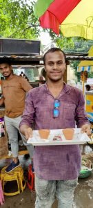 দোকান খোলা দিনৰে পৰা বিজিতে আমাক তেওঁৰ চাহৰ বিপণিলৈ মাতি আছিল। ইয়াৰ আগতে এদিন গৈ তেওঁক লগ নাপালোঁ। আজি কটন বিশ্ববিদ্যালয়ত শৈক্ষিক কাম এটা কৰি উভতি আহোতে বিজিতৰ বিপণিত সোমালো আৰু সৌভাগ্য ক্ৰমে বিজিতকো লগ পালো। আবেলি সময়,তাতে চিপ চিপ বৰষুণ দি আছিল। চাহ একাপৰ বাবে উপযুক্ত সময় আৰু পৰিবেশ। গছৰ তলত বহি মাটিৰ গিলাচত মচলাৰ সুবাসেৰে আমোলমোলাই থকা থকথকীয়া গাখীৰ চাহ প্ৰায় দুকাপ খালো লগতে খালো বিজিতৰ মাতৃয়ে কৰা নাৰিকল দিয়া পিঠা। কি যে সোৱাদ! চাহৰ আমেজলৈ বিজিতৰ সৈতে পাতিলো বহুত কথা। আমাৰ বজালী কলেজৰ দিনবোৰ যেন কটন বিশ্ববিদ্যালয়ৰ সন্মুখলৈ উভতি আহিল।