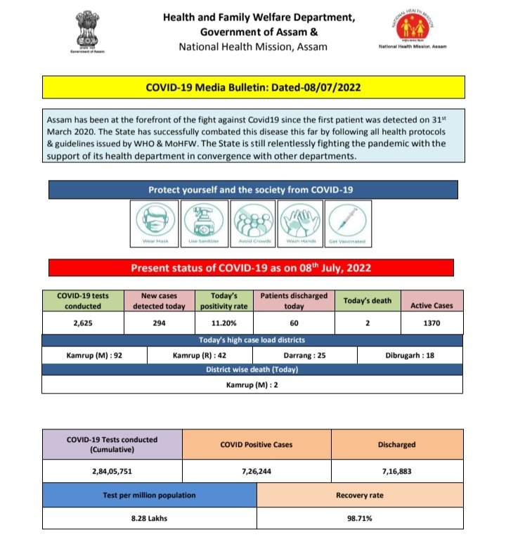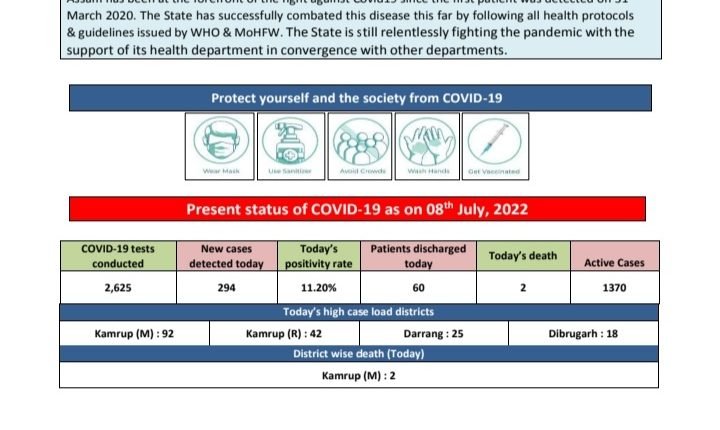 বিগত ২৪ ঘন্টাত নতুনকৈ ২৯৪ জন লোক কৰ’নাত আক্ৰান্ত। কামৰূপ মহানগৰত কৰ’না আক্ৰান্ত দুজনৰ মৃত্যু। ৰাজ্যত ক’ভিড আক্ৰান্তৰ সংখ্যা ১৩৭০ জনলৈ বৃদ্ধি। ক’ভিডৰ এই সংক্ৰমণক লৈ আতংকিত হোৱাৰ কোনো প্রয়োজন নাই বুলি মত প্ৰকাশ কৰিছে খোদ স্বাস্থ্য মন্ত্ৰী কেশৱ মহন্তই। ক’ভিডৰ সৈতে যুঁজ দিব পৰাকৈ ৰাজ্য চৰকাৰ সম্পূৰ্ণ ৰূপে সাজু। সম্প্ৰতি ৰাজ্যখনত ক’ভিডৰ যিটো ভেৰিয়েণ্টৰ সংক্রমণ চলি আছে সেইটো যথেষ্ট দুৰ্বল।