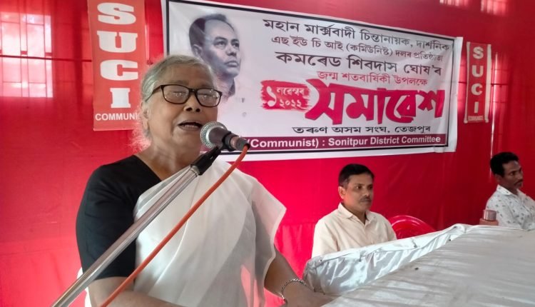 শতাব্দ প্ৰতিনিধি,তেজপুৰ,১নৱেম্বৰ: আজি তেজপুৰৰ তৰুণ অসম সংঘত এছ ইউ চি আই(কমিউনিষ্ট) দলৰ শোণিতপুৰ জিলা কমিটিৰ উদ্যোগত মাৰ্ক্সবাদী চিন্তানায়ক, দাৰ্শনিক, সৰ্বহাৰাৰ নেতা কমৰেড শিবদাস ঘোষৰ জন্ম শতবাৰ্ষিকী পালনৰ বছৰ জোৰা কাৰ্যসূচীৰ অংশ হিচাপে এখন সমাৱেশ অনুষ্ঠিত হয়। সমাৱেশত মুখ্য বক্তা হিচাবে উপস্থিত থাকে দলৰ অসম ৰাজ্যিক কমিটিৰ সম্পাদক তথা কেন্দ্ৰীয় কমিটিৰ সদস্য অধ্যাপিকা চন্দ্ৰলেখা দাস। আৰম্ভণিতে দিনৰ ১২ বজাত এক শোভাযাত্ৰাই চহৰৰ নানা পথ পৰিক্ৰমা কৰি সমাৱেশ থলীত সমবেত হয়।তাৰপিছত দলৰ শোণিতপুৰ জিলা কমিটিৰ সম্পাদক অজয় আচাৰ্য্যৰ সভাপতিত্বত অনুষ্ঠিত হোৱা সমাৱেশৰ মুখ্য বক্তা চন্দ্ৰলেখা দাসে কয়,পুঁজিবাদবিৰোধী সমাজতান্ত্ৰিক বিপ্লৱক তৰান্বিত কৰাৰ লক্ষ্য লৈয়েই সমগ্ৰ দেশব্যাপী বছৰজোৰা কাৰ্যসূচীৰে এই মহান মাৰ্ক্সবাদী চিন্তানায়ক গৰাকীৰ জন্মশতবাৰ্ষিকী পালিত হৈ আছে।তেওঁ কয়,স্বাধীনতাৰ প্ৰাকমুহুৰ্তত একমাত্ৰ ব্যাক্তি কমৰেড শিবদাস ঘোষে কৈছিল, এই স্বাধীনতাৰ যোগেদি বৃটিছ সাম্ৰাজ্যবাদী শোষণৰ অন্ত পৰিল যদিও প্ৰকৃত গণমুক্তি নাহিল।বৰং দেশ নতুনকৈ জাতীয় পুঁজিপতি শ্ৰেণীৰ শোষণৰ জালত আবদ্ধ হল।তেওঁ আৰু কয় যে, সিদিনা কমৰেড শিবদাস ঘোষে এই অভ্ৰান্ত বিশ্লেষণৰ ভিত্তিতেই নিজে অত্যন্ত কষ্টকৰ অসাধাৰণ সংগ্ৰামৰ সূচনা কৰি ভাৰতৰ বুকুত এটা প্ৰকৃত কমিউনিষ্ট পাৰ্টি গঢ়ি তুলিলে।আজি এই দলে দেশৰ সৰ্বত্ৰ জনসাধাৰণৰ জ্বলন্ত সমস্যাবোৰক লৈ প্ৰতিদিনে আন্দোলন গঢ়ি তোলাৰ সংগ্ৰাম কৰি আছে।অধ্যাপিকা দাসে বুৰ্জোৱা নিৰ্বাচনক পুঁজিপতি শ্ৰেণীৰ এক প্ৰতাৰণা বুলি আখ্যা দি কয়,জনসাধাৰণে আজি মনুষ্যত্ব লৈ জীয়াই থাকিবলৈ হলে এই নিৰ্বাচনৰ মোহৰ পৰা মুক্ত হৈ পুঁজিবাদবিৰোধী সমাজতান্ত্ৰিক বিপ্লৱৰ পৰিপূৰক গণ আন্দোলন গঢ়ি তুলিব লাগিব।এই পথেৰে আগুৱাই আহিবলৈ তেওঁ আহ্বান জনায়।