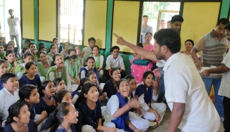 উত্তৰ লখিমপুৰ, ২১ জুনঃ লখিমপুৰ জিলাৰ গড়েহগা বাহঁপাতি উচ্চত্বৰ মাধ্যমিক বিদ্যালয়ত আজি ছাত্ৰ-ছাত্ৰীৰ মাজত এদিনীয়া নাট কৰ্মশালা অনুস্থিত কৰা হয়। সংস্কাৰ ভাৰতী উত্তৰ অসম প্ৰান্ত আৰু অভিনৱ থিয়েটাৰ,লখিমপুৰৰ দ্বাৰা অনুস্থিত কৰা এই নাট কৰ্মশালাত পাঠদান কৰে নাট পৰিচালক তথা ভাৰত চৰকাৰৰ ফ্লিম চেন্সৰ বৰ্ডৰ সদস্য দয়াল কৃষ্ণ নাথ আৰু মধ্যপ্ৰদেশ নাট্য বিদ্যালয়ৰ স্নাতক তথা ৰাষ্ট্ৰীয় নাট্য বিদ্যালয়ৰ থিয়েটাৰ ইন এডুকেচনৰ শিক্ষক ঋষিকেশ কুমাৰে। অধ্যক্ষ দুলাল চন্দ্ৰ নাথৰ সঞ্চালনাত অনুস্থিত এই কৰ্মশালাৰ প্ৰায় ২০০ গৰাকী ছাত্ৰ-ছাত্ৰীয়ে অংশ গ্ৰহণ কৰে। অনুস্থানত বক্তব্য ৰাখে শিক্ষক দিম্ব প্ৰসাদ শৰ্মাই।