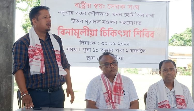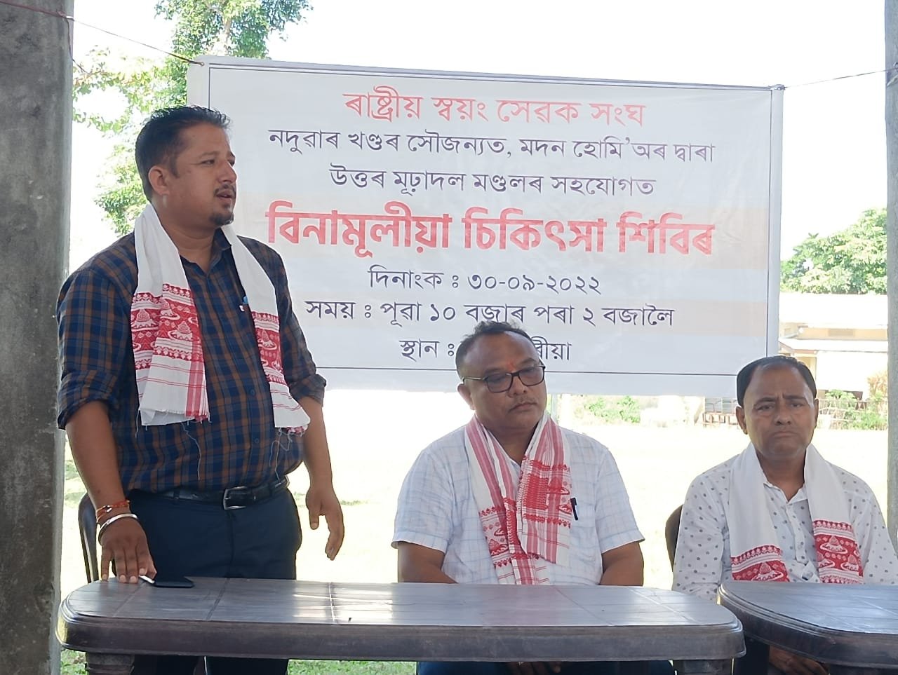 শতাব্দ প্ৰতনিধি, জামুগুৰিহাট, ৩০ ছেপ্টেম্বৰঃ চতিয়া সমষ্টিৰ অন্তৰ্গত মঙ্গলবৰীয়া সামুহিক মঞ্চত আজি ৰাষ্ট্ৰীয় স্বয়ং সেৱক সংঘৰ উদ্যোগত নদুৱাৰ খণ্ডৰ সৌজন্যত, মদন হোমিঅ’ৰ দ্বাৰা উত্তৰ মুঢ়াদল মণ্ডলৰ সহযোগত এটি বিনামূলীয়া চিকিৎসা শিৱিৰ অনুষ্ঠিত হয়৷ বিশেষজ্ঞ চিকিৎসকসকলৰ দ্বাৰা অনুষ্ঠিত কৰা এই চিকিৎসা শিৱিৰটো আনুষ্ঠানিকভাৱে পূৱা শুভ উদ্ধোধন কৰি মুঢ়াদল জিলা পৰিষদৰ সদস্য কিশোৰ দাহালে কয়- এনেধৰণৰ চিকিৎসা ব্যৱস্থাৰ জৰিয়তে এই অঞ্চলৰ দুখীয়া নিচলা ৰাইজ উপকৃত হ’ব৷ ৰাষ্ট্ৰীয় স্বয়ং সেৱক সংঘই যি ব্যৱস্থা হাতত লৈছে সেইয়া প্ৰশংসনীয়৷ বিনামূলীয়া চিকিৎসা শিৱিৰত অংশ লোৱা সকলো চিকিৎসক, চিকিৎসা কৰ্মীক আন্তৰিক শুভেচ্ছা জ্ঞাপন কৰে মুঢ়াদল জিলা পৰিষদৰ সদস্যগৰাকীয়ে৷ উক্ত শিৱিৰ অনুষ্ঠানত উত্তৰ মুঢ়াদল গাঁও পঞ্চায়তৰ সভাপতি দিপক নেৱাৰ, অঞ্চলৰে জেষ্ঠ সমাজকৰ্মী প্ৰবিন দাসৰ লগতে বহুকেইজন গণ্যমান্য ব্যক্তি উপস্থিত থাকে।