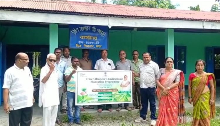 শতাব্দ প্ৰতিনিধি, জামুগুৰিহাট ২২ জুলাইঃ জামুগুৰিহাটৰ সমীপৱৰ্তী তথা চতিয়া সমষ্টিৰ অন্তৰ্গত চমাৰদলনীস্থিত দক্ষিণ নাগশংকৰ গাঁও পঞ্চায়ত কাৰ্যালয়ৰ চৌহদত আজি মুখ্যমন্ত্ৰী ড° হিমন্ত বিশ্ব শৰ্মাৰ আহ্বান মৰ্মে আৰু চতিয়া সমষ্টিৰ বিধায়ক পদ্ম হাজৰিকাৰ বলিষ্ঠ নেতৃত্বত অমৃত বৃক্ষ ৰোপন কাৰ্যসূচী ৰূপায়ণ কৰে। শিল্পী জ্যোতিপ্ৰসাদ আগৰৱালাৰ “সেউজী সেউজী সেউজী অ’ সেউজী ধৰণী ধুনীয়া” এই বানীক উদ্দেশ্য কৰি আজি দক্ষিণ নাগশংকৰ গাঁও পঞ্চায়তৰ সভানেত্ৰী পাৰ্বতী শৰ্মাই কয় যে – “গছ থাকিলেহে মানুহ থাকিব। গতিকে আজিৰ পৰাই সকলোৱে ঘৰত এজোপা গছপুলি ৰোপন কৰি যত্ন লৈ প্ৰতিপাল কৰাতো আমাৰ দ্বায়িত্ব।” আজি পঞ্চায়তৰ কাৰ্যালয়ৰ চাৰিও সীমাতে উন্নত প্ৰজাতিৰ গছ পুলি ৰোপণ কৰে দক্ষিণ নাগশংকৰ গাঁও পঞ্চায়তৰ সভানেত্ৰী পাৰ্বতী শৰ্মা, সম্পাদক ভূপেন দাস, ৩ নং ৱাৰ্ডৰ সদস্য চন্দন উপাধ্যায়ৰ লগতে প্ৰতিটো ৱাৰ্ডৰ সদস্য-সদস্যাসকলৰ লগতে অঞ্চলবাসী ৰাইজে ।