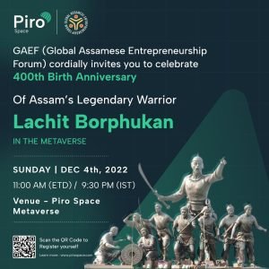 ৱাছিংটন ডি চি, আমেৰিকা, ৬ ডিচেম্বৰ : গোলকীয় অসমীয়া উদ্যমিতা মঞ্চ (GAEF, www.gaefnortheast.org)ৰ উদ্যোগত মেটাভাৰ্ছত মহাবীৰ লাচিত বৰফুকনৰ ৪০০ সংখ্যক জন্ম বাৰ্ষিকী আয়োজন উদযাপন কৰা হয়। এই ভাৰ্চুৱেল অনুষ্ঠানত প্রৱাসী অসমীয়া আৰু সমগ্ৰ বিশ্বৰ বহু শীৰ্ষ আমোলা, ৰাজনীতিবিদ, বিজ্ঞানী, উদ্যোগী আৰু ছাত্ৰ-ছাত্ৰীয়ে অংশগ্রহণ কৰে। সমগ্ৰ দেশতে মহাবীৰ লাচিত বৰফুকনৰ ৪০০ সংখ্যক জন্ম বাৰ্ষিকী উদযাপন কৰাৰ সময়তে ৪ ডিচেম্বৰত পাইৰ’স্পেচ মেটাভাৰ্ছত জিএইএফে মহান যোদ্ধাগৰাকীক এক অনন্যভাৱে শ্ৰদ্ধাঞ্জলি জনায়। অসমৰ হাৰ্টথ্ৰব, কণ্ঠশিল্পী জুবিন গাৰ্গ আৰু ‘নিউজ লাইভ’ৰ জ্যেষ্ঠ কাৰ্যবাহী সম্পাদক ছায়ামণি ভূঞা অনুষ্ঠানটোৰ মূল আকৰ্ষণ আছিল আৰু প্ৰথমবাৰৰ বাবে তেওঁলোকে আনুষ্ঠানিকভাৱে মেটাভাৰ্ছত দৰ্শকক সম্বোধন কৰে। এই অনুষ্ঠানৰ আয়োজক আমেৰিকা যুক্তৰাষ্ট্ৰৰ ৱাশ্বিংটনস্থিত জিএইএফৰ সাধাৰণ সম্পাদক অঞ্জনা বৰদলৈয়ে কয়— “বীৰ লাচিত বৰফুকন সকলো অসমীয়াৰ বাবে গৌৰৱ। লাচিত বৰফুকন আছিল আহোম ৰাজ্যৰ এজন মহান সেনাপতি যিয়ে কেইবাবাৰো মোগল সাম্ৰাজ্যৰ আগ্ৰাসনক প্ৰতিহত কৰিছিল।” ‘নিউজ লাইভ’ৰ জ্যেষ্ঠ কাৰ্যবাহী সম্পাদক ছায়ামণি ভূঞাই অসমৰ উদ্যোগীৰ সৈতে সহযোগিতা কৰাৰ মঞ্চ প্ৰদানৰ বাবে জিএইএফৰ প্ৰচেষ্টা অসমৰ উন্নতিৰ বাবে তাৎপৰ্যপূৰ্ণ বুলি মত প্ৰকাশ কৰে।