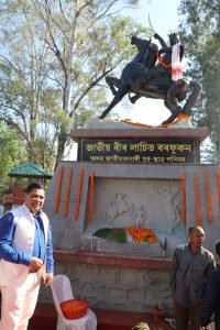 শতাব্দ প্ৰতিনিধি, তেজপুৰ, ২৪ নবেম্বৰঃ অসম আৰু অসমীয়াৰ শৌৰ্য্য বীৰ্য্যৰ প্ৰতীক, মহাবীৰ লাচিত বৰফুকনৰ জন্মদিন অৰ্থাৎ ৪০০ বছৰীয়া জয়ন্তী উপলক্ষে আজি দিনটোৰ পুৱাই তেজপুৰৰ ঐতিহাসিক নেহৰু ময়দানৰ সন্মুখৰ অসমৰ প্ৰথমটো লাচিত বৰফুকনৰ প্ৰতিমূৰ্তিৰ সন্মুখত শোণিতপুৰ জিলা প্ৰশাসনৰ লগতে অসম জাতীয়তাবাদী যুৱ ছাত্ৰ পৰিষদৰ শোণিতপুৰ জিলা সমিতিৰ তৰফৰ পৰা আয়োজিত শ্ৰদ্ধাঞ্জলি অনুষ্ঠানৰ আৰম্ভণিতে শোণিতপুৰৰ উপায়ুক্ত দেৱ কুমাৰ মিশ্ৰ, তেজপুৰৰ বিধায়ক পৃথ্বিৰাজ ৰাভা, জাতীয়তাবাদী যুৱ ছাত্ৰ পৰিষদৰ শোণিতপুৰ জিলা সমিতিৰ সভাপতি নৃপেন কুমাৰ নাথ, তেজপুৰ সাহিত্য সভাৰ সভাপতি ডঃ ভূপেন শইকীয়া, যুৱ-ছাত্ৰ পৰিষদৰ প্ৰাক্তন বিষয়ববীয়া আৰু বিশিষ্ট ব্যক্তি সকলে অংশ গ্ৰহণ কৰে।
