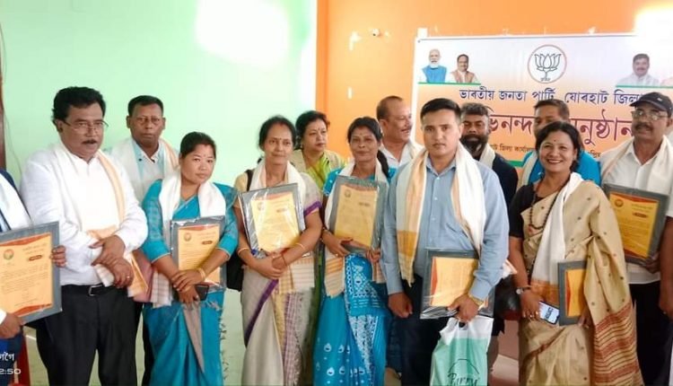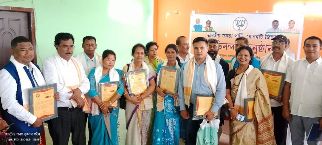 শতাব্দ প্ৰতিনিধি, যোৰহাট, ৩০ এপ্ৰিলঃ ভাৰতীয় জনতা পাৰ্টীৰ যোৰহাট জিলা সমিতিৰ উদ্যোগত আজি কেন্দুগুৰিৰ জিলা কাৰ্যালয়ত সদ্য নিৰ্বাচিত ঠেঙ্গাল কছাৰী স্বায়ত্ত শাসিত পৰিষদ আৰু পৌৰসভা নিৰ্বাচনত যোৰহাট জিলাৰ অন্তৰ্গত যোৰহাট, তিতাবৰ, টীয়কৰ বিজয়ী প্ৰাৰ্থী সকলক সম্বৰ্ধনা জনোৱাৰ অৰ্থে “অভিনন্দন অনুষ্ঠান” অনুষ্ঠিত হয়। ভাৰতীয় জনতা পাৰ্টি যোৰহাট জিলাৰ সভাপতি হেমন্ত কলিতাৰ সভাপতিত্বত আৰু জিলা সাধাৰণ সম্পাদক অমৰজ্যোতি শইকীয়াই আঁত ধৰা সভাত জ্যেষ্ঠ কাৰ্যকৰ্তা পালিত বৰা, বিধায়ক হিতেন্দ্ৰ নাথ গোস্বামী, বিধায়ক ৰূপজ্যোতি কুৰ্মী, প্ৰাক্তন জিলা সভাপতি কামাখ্যা মোহন দাস, প্ৰাক্তন জিলা সভাপতি তথা ৰাজ্যিক কাৰ্যনিৰ্বাহক জিতু হাজৰিকা, Fishfed’ৰ অধ্যক্ষ সুশীলা হাজৰিকা, যোৰহাট উন্নয়ন প্ৰাধীকৰণৰ অধ্যক্ষ প্ৰশান্ত গোস্বামী, ৰাজ্যিক যুৱ মৰ্চাৰ সভাপতি সিধাংকু অংকুৰ বৰুৱা প্ৰমুখ্যে ৰাজ্যিক, জিলা আৰু মণ্ডল পৰ্যায়ৰ কাৰ্যকৰ্তা সকলে অংশগ্ৰহণ কৰে।