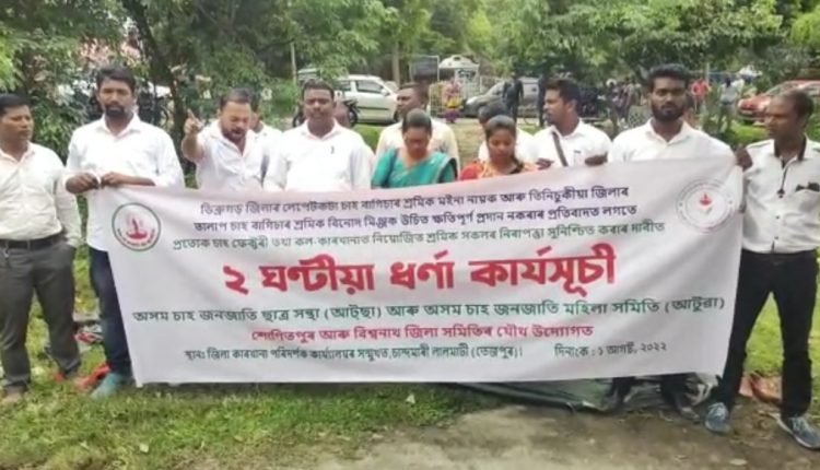 শতাব্দ প্ৰতিনিধি, তেজপুৰ, ১আগষ্টঃ ডিব্ৰুগড়ৰ লেপেটকটা চাহ বাগিছাৰ কলঘৰত কৰ্মৰত অৱস্থাত গুৰুতৰভাৱে আহতহৈ চিকিৎসাধীন মইনা নায়কক ৰাজ্য চৰকাৰৰ শ্ৰম বিভাগে নির্ধাৰণ কৰা ক্ষতিপূৰণ শীঘ্ৰে প্ৰদান কৰাৰ ব্যৱস্থা কৰা, লেপেটকটা চাহ বাগিছাৰ প্ৰধান পৰিচালকৰ লগতে ফেক্টৰী পৰিচালক গৰাকীক তদন্তৰ আওতালৈ আনি দুয়োগৰাকী পৰিচালকৰ বিৰুদ্ধে আইনগত ব্যৱস্থা গ্ৰহণ কৰি কঠোৰ শাস্তি প্ৰদানৰ ব্যৱস্থা কৰা আৰু ৰাজ্যৰ প্ৰতিখন চাহ বাগিছাত কাৰখানা আইন ১৯৪৮ আৰু পুলিৰোপন শ্ৰমিক আইন ১৯৫১, শ্ৰমিক সুৰক্ষা বিধি সমূহ সম্পূৰ্ণ ভাৱে কাৰ্যকৰী হোৱাৰ প্ৰতি গুৰুত্ব প্ৰদানৰ দাবীত অসম চাহ জনজাতি ছাত্ৰ সন্হাৰ শোণিতপুৰ জিলা সমিতি আৰু অসম চাহ জনজাতি মহিলা সমিতিৰ অর্ধশতাধিক প্ৰতিবাদকাৰীয়ে তেজপুৰস্থিত শোণিতপুৰ জিলা কল কাৰখানা পৰিদৰ্শকৰ কাৰ্যালয়ৰ সন্মূখত আজি দিনৰ ১১-৩০বজাৰ পৰা দুইঘন্টীয়া ধৰ্ণা কাৰ্যসূচী ৰূপায়ণ কৰে। প্ৰতিবাদকাৰীসকলে এই দাবীৰ সমৰ্থনত শ্ল’গান দিয়াৰ পিছত উক্ত দাবী সম্বলিত এক স্মাৰক পত্ৰ মুখ্যমন্ত্ৰীলৈ প্ৰেৰণ কৰে।