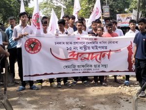 ধেমাজি আঞ্চলিক ছাত্ৰ সন্থাৰ উদ্যোগত ছাত্ৰ সংগঠনটোৰ ভালেসংখ্যক কৰ্মীয়ে হাতে হাতে কোৰ-বেলচা-টুকুৰী লৈ ছেণ্ডগ্ৰেভেল ছটিয়াই পথটো মসৃণ কৰাৰ চেষ্টা কৰে ৷উল্লেখ্য যে ৰাষ্ট্ৰীয় ঘাইপথটোৰ কাষতে আছে ধেমাজি জিলা উপায়ুক্ত, আৰক্ষী অধীক্ষক, গড়কাপ্তানি বিভাগৰ অধীক্ষক অভিযন্তা, কাৰ্যবাহী অভিযন্তা, সহকাৰী কাৰ্যবাহী অভিযন্তা, যুটীয়া স্বাস্থ্য সঞ্চালক, জলসম্পদ বিভাগৰ আদি কাৰ্যালয় । সকলো চৰকাৰী কৰ্মচাৰী, ছাত্র-ছাত্রী, ৰোগী, জ্যেষ্ঠ নাগৰিক তথা সৰ্বসাধাৰণ ৰাইজে সেইটো পথেৰে অহা যোৱা কৰি ত্রাহি মহুসূধন সোঁৱৰিবলগীয়া হৈছে । জিলাখনৰ স্থানীয় বিধায়ক তথা অসম চৰকাৰৰ শিক্ষামন্ত্ৰী ৰণোজ পেগু, জোনাই বিধায়ক ভূৱন পেগু, সাংসদ প্ৰদান বৰুৱা, অভিভাৱক মন্ত্রী সঞ্জয় কিষাণকে ধৰি বিভিন্ন মন্ত্রী-সাংসদ, চৰকাৰী উচ্চপদস্থ বিষয়াই সেইফালেদিয়ে অহা যোৱা কৰে যদিও আজিলৈকে কোনোৱে ৰাষ্ট্ৰীয় ঘাইপথটোৰ মেৰামতি কৰাৰ ব্যৱস্থা কৰা নাই । সম্পূৰ্ণ মেৰামতি কৰাৰ দূৰৰ কথা নেতা-মন্ত্রী-সাংসদে স্থানীয় গড়কাপ্তানি বিভাগক কৈ গাঁত কেইটাও পুতিব পৰা নাই। সেয়ে আজি পুৱাই সদৌ অসম ছাত্ৰ সন্থাৰ সাংগঠনিক সম্পাদক মন্টুৰাজ বৰুৱা, সদৌ ধেমাজি জিলা ছাত্র সন্থাৰ সভাপতি দিপক শৰ্মা, ধেমাজি আঞ্চলিক ছাত্র সন্থাৰ সভাপতি কৰুণজ্যোতি চেতিয়া, সাধাৰণ সম্পাদক ৰন্টু গগৈৰ ,ধেমাজি মহকুমা ছাত্র সন্থাৰ উপ-সভাপতি পুলকিত দত্ত, মহকুমা ছাত্র সন্থাৰ মুখ্য সাংগঠনিক সম্পাদক দিপাংকৰ কলিতা নেতৃত্বত ধেমাজি আঞ্চলিক ছাত্র সন্থাৰ শতাধিক কৰ্মীয়ে হাতে হাতে কোৰ, বেলচা লৈ ছেণ্ড গ্ৰেভেলৰে ৰাষ্ট্ৰীয় ঘাইপথটোৰ ডাঙৰ ডাঙৰ গাঁতবোৰ পোতাত ব্যস্ত হৈ পৰে ।