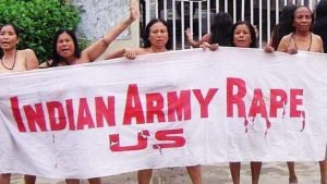 ভাৰততো হৈছে নগ্ন প্রতিবাদ। ২০০৪ চনত মণিপুৰত ১২গৰাকী মহিলা নগ্ন হৈ ৰাস্তাত নামে। ইম্ফলত কাংলা ফর্টৰ সমুখত প্রকাশ্যে নগ্ন হয় তেওঁলোক। শৰীৰ ঢাকিছিল এখন কাপোৰৰ বেনাৰেৰে। তাত লিখা আছিল— Indian army rape us। মণিপুৰ সেই নগ্ন প্রতিবাদ আছিল অসম ৰাইফলছৰ বিৰুদ্ধে। মনোৰমা দেৱী নামৰ এগৰাকী যুৱতীক জেৰা কৰাৰ নামত ঘৰৰ পৰা তুলি নি ধর্ষণ কৰি খুন কৰাৰ অভিযোগ উঠিছিল অসম ৰাইফলছৰ কেইবাজনো জোৱানৰ বিৰুদ্ধে। নগ্ন হৈ প্রতিবাদ কৰা মণিপুৰৰ সেই ১২গৰাকী মহিলাক ‘মণিপুৰৰ মা’ বোলা হৈছিল সেই সময়ত। প্রতিবাদৰ সময়ত তেওঁলোকে কৈছিল— ‘‘আমি সকলোৱেই মনোৰমাৰ মা। আমাকো লৈ যোৱা, ধর্ষণ কৰা, মাৰি পেলোৱা।’’
