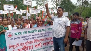 হাতেহাতে বেনাৰ, প্লেকাৰ্ড লৈ প্ৰতিবাদকাৰীসকলে তেওঁলোকৰ দাবীৰ সমৰ্থনত বিভিন্ন শ্ল’গান দি পৰিৱেশ উত্তাল কৰি তোলে । উল্লেখ্য যে এপ্ৰিল মাহৰ পৰা প্ৰাকৃতিক গেছৰ অভাৱনীয় মূল্যবৃদ্ধিয়ে অশনি সংকেত কঢ়িয়াই আনিছে ৰাজ্যৰ চাহ উদ্যোগলৈ । লিম্বুগুৰি চাহ বাগিছাৰ ফেক্টৰী বৰ্তমান গেছৰ মূল্যবৃদ্ধিৰ ফলত বন্ধ কৰি ৰাখিবলগীয়া হৈছে । ইয়াৰ কুফল ভোগ কৰিছে বাগিছাৰ শ্রমিক ৰাইজে । ৰাজ্যৰ ৮০ শতাংশ চাহ উদ্যোগেই প্ৰাকৃতিক গেছৰ ওপৰত নিৰ্ভৰশীল । মাথোঁ ২০ শতাংশইহে ব্যৱহাৰ কৰে কয়লা বা আন বিকল্প ইন্ধন । এনে পৰিস্থিতিত ভয়ংকৰ বিপৰ্যয় নামি আহিছে ৰাজ্যৰ চাহ উদ্যোগলৈ । বহু বাগিছাই উৎপাদন হ্ৰাস কৰিবলৈ বাধ্য হোৱাৰ বিপৰীতে লিম্বুগুৰি চাহ বাগিছাৰ দৰে বাগিছাই ফেক্টৰী বন্ধ কৰিবলগীয়া হৈছে । এ চি এম এছৰ কেন্দ্ৰীয় উপ-সভাপতি তথা পানীতোলা শাখাৰ সম্পাদকৰ দায়িত্বত থকা চাবুৱা প্ৰাক্তন বিধায়ক ৰাজু চাহুৱে এক বিবৃতিত ক্ষোভ প্ৰকাশ কৰি কয় যে বিজেপি চৰকাৰৰ আমোলত উন্নয়নৰ নামত বনিয়া গোষ্ঠীৰ স্বাৰ্থত চাহ শ্ৰমিকৰ অধিকাৰ খৰ্ব কৰা হৈছে । চাহ বাগিছা সম্পর্কে জ্ঞান নথকা ব্যক্তিৰ হাতত চাহ উদ্যোগটো পৰি চাহ পাতৰ মান নিম্নগামী হৈছে । শেহতীয়াকৈ প্ৰাকৃতিক গেছৰ মূল্যবৃদ্ধিয়ে চাহ উদ্যোগটোৰ ওপৰত মাধমাৰ শোধাইছে । এনেদৰে ধাৰাবাহিক বিপৰ্য্যয়ৰ সন্মুখীন হৈ থাকিলে চাহ উদ্যোগটো অসমৰ পৰা নিঃশেষ হৈ যাবলৈ বেছিপৰ নেলাগে বুলি চাহুৱে কয় ।