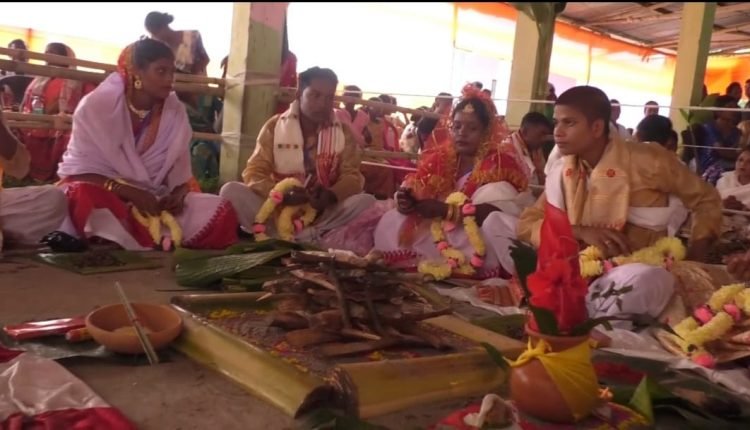 শতাব্দ প্ৰতিনিধি, লখিমপুৰ ১৬ আগষ্টঃ আজি লখিমপুৰৰ বগীনদীত একেখন ৰভাৰ তলত বিবাহত বহিল ২৭৬ জোৰা দৰা-কইনা৷ পূৰ্বতে অ-সামাজিক ব্যৱস্থাৰে বিয়া হোৱা দৰা-কইনা সকলে এইবাৰ সংস্কাৰ বিবাহেৰে আনুষ্ঠানিক স্বীকৃতি লাভ কৰে৷ আজি লখিমপুৰ জিলা বিবাহ সংস্কাৰ সমিতিৰ উদ্যোগত হংস ফাউণ্ডেচনৰ সহযোগত অনুষ্ঠিত হয় এই সামূহিক বিবাহ৷ উল্লেখ্য যে এই সামূহিক বিবাহত পাঁচ প্ৰকাৰ নীতি-নিয়মেৰে পৃথকে পৃথকে সামাজিকভাৱে বিবাহ বন্ধনত আৱদ্ধ হয় এই সকল দম্পতি৷ সামূহিক বিবাহ উপলক্ষে আজি সম্পূৰ্ণ হিন্দু ধৰ্মীয় পৰম্পৰা বৈদিক প্ৰথা, বিধি পাঠ, আদিবাসী সকলৰ মাৰোৱা নীতি, মিচিং সকলৰ শলিতা জ্বলোৱা আৰু সোণোৱাল সকলৰ ভকতীয়া প্ৰথাৰে এই বিবাহ সম্পূৰ্ণ নীতি-নিয়ম শৃংখলাৰ মাজেৰে অনুষ্ঠিত হয়৷ এই বিবাহ অনুষ্ঠানৰ সম্পূৰ্ণ ব্যয় বহন কৰে উত্তৰাখণ্ডৰ হংস ফাউণ্ডেচনে৷ বিবাহৰ প্ৰয়োজনীয় সকলো সামগ্ৰী সংস্কাৰ সমিতিয়ে বহন কৰাৰ উপৰি যাৱতীয় অন্যান্য সামগ্ৰীও দৰা-কইনাক উপহাৰ হিচাপে প্ৰদান কৰে৷ মূলতঃ সামাজিক সংস্কাৰৰ বাহিৰত ৰৈ যোৱা আৰ্থিক ভাৱে দুৰ্বল তথা বিভিন্ন কাৰণত সংস্কাৰ হ’ব নোৱাৰা এই দম্পতি সকলক সংস্কাৰৰ আওঁতালৈ আনি বগীনদীৰ গজাই-মনাই ক্ষেত্ৰত এই সামূহিক বিবাহ সুকলমে অনুষ্ঠিত কৰা হয় বুলি বগীনদী বিবাহ সংস্কাৰ সমিতিৰ সভাপতি মজিন সোনোৱাল, সম্পাদক দীপক কুলিয়ে জানিবলৈ দিয়ে৷