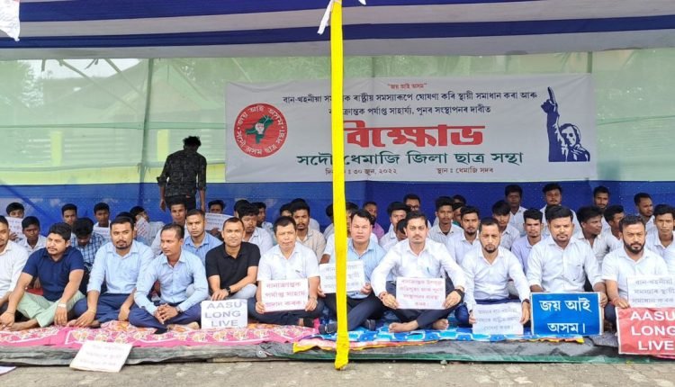 শতাব্দ প্ৰতিনিধি, ধেমাজি, ৩০ জুনঃ সদৌ অসম ছাত্র সন্থাৰ আহ্বান মৰ্মে আজি ধেমাজি জিলাতো সদৌ ধেমাজি জিলা ছাত্র সন্থাই অসমৰ বান-গৰাখহনীয়া সমস্যাক ৰাষ্ট্ৰীয় সমস্যা হিচাপে ঘোষণা কৰি স্থায়ী সমাধান কৰা, বানত ক্ষতিগ্ৰস্ত ৰাইজক পৰ্যাপ্ত সাহাৰ্য, উচিৎ ক্ষতিপূৰণ আৰু পুনৰ সংস্থাপনৰ দাবীত ধেমাজি নগৰত বিক্ষোভ কাৰ্যসূচী ৰূপায়ণ কৰে। ছাত্র সন্থাৰ প্ৰায় দুই শতাধিক কৰ্মী উপস্থিত থকা কাৰ্যসূচীত ধেমাজি জিলা ছাত্র সন্থাৰ সভাপতি দিপক শৰ্মা আৰু সাধাৰণ সম্পাদক কল্যাণ গগৈয়ে কয় যে প্ৰতিবছৰে সমগ্ৰ অসমৰ বিভিন্ন জিলাৰ লগতে ধেমাজি জিলাতো বান-গৰাখহনীয়া সমস্যাই ব্যাপক ক্ষয়-ক্ষতি কৰি আহিছে। কিন্তু কোনো এখন চৰকাৰে আজিলৈকে এই বান-গৰাখহনীয়া সমস্যাৰ স্থায়ী সমাধান কৰিব নোৱাৰিলে। এইবছৰো জিলাখনৰ জীয়াঢল, কুমটীয়া, গাইনদী, চিমেন, চিয়াং, লালী, ৰাইনৈ, ন-নদী, মিছামাৰী, নিলখ, ডিমৌ আদি নৈৰ বাঢ়নি পানীয়ে শতাধিক গাওঁ প্লাবিত কৰি ৰাখিছে । হাজাৰোধিক পৰিয়াল গৃহহাৰা হোৱাৰ লগতে সা-সম্পত্তি, পশুধন বাঢ়নি পানীয়ে উটুৱাই লৈ গৈছে। ঠায়ে ঠায়ে ভিতৰুৱা ৰাস্তা-ঘাট ভাঙি তচনচ কৰি দিছে। চিয়াং নৈৰ পানীয়ে পবা বনাঞ্চলক সংকুচিত কৰি অনাৰ লগতে কবু চাপৰি, সন্তপুৰ, কেচাকাঠনি, লালুকিজান, চমকং আদি অঞ্চল নদীৰ বুকুত যাহ যোৱাৰ উপক্ৰম হৈছে। প্ৰতিবছৰে বাৰিষাত এইবোৰ সমস্যাই দেখা দিয়ে যদিও আজিলৈকে বিজ্ঞানসন্মত পদ্ধতিৰে এই সমস্যাৰ সমাধান কৰিবলৈ চেষ্টা নকৰাত ক্ষোভ প্ৰকাশ কৰি কেন্দ্ৰীয় চৰকাৰৰ চকু কেৱল অসমৰ সম্পদৰ ওপৰত, অসমৰ সমস্যাৰ ওপৰত কেন্দ্ৰৰ চকু নাই কিয় বুলি প্ৰশ্ন কৰে। দেশৰ প্ৰধানমন্ত্রী আৰু গৃহমন্ত্রীক উদ্দেশ্য কৰি কয় যে কেৱল নিৰ্বাচনৰ সময়ত বৰ বৰ কথা কলেই, প্ৰতিশ্ৰুতি দিলেই নহব; এই বিপদৰ সময়ত কেৱল মাত্র টেলিফোন কৰি দায়িত্ব সামৰিলে নহ’ব, অসমৰ বান-খহনীয়া সমস্যাক অতিশ্ৰীঘ্ৰে ৰাষ্টীয় সমস্যা হিচাপে ঘোষণা কৰি বিশেষ পুঁজি মোকলাই এই সমস্যাৰ স্থায়ী সমাধান কৰিবই লাগিব। প্ৰতিবাদী বিক্ষোভৰ জৰিয়তে সদৌ ধেমাজি জিলা ছাত্র সন্থাই অসম চৰকাৰকো বানপানীত ক্ষতিগ্ৰস্ত ৰাইজক পৰ্যাপ্ত সাহাৰ্য প্ৰদান কৰাৰ লগতে ঘৰ-বাৰী হেৰুৱা ব্যক্তিসকলক উচিৎ ক্ষতিপূৰণ আৰু পুনৰ সংস্থাপনৰ ব্যৱস্থা কৰিবলৈ দাবী জনায়। বিক্ষোভ কাৰ্যসূচীত সদৌ অসম ছাত্র সন্থাৰ সাংগঠনিক সম্পাদক মন্টুৰাজ বৰুৱা, কাৰ্যনিৰ্বাহক সদস্য ৰাজীৱ গগৈ, ধেমাজি মহকুমা ছাত্র সন্থাৰ সভাপতি অৰবিন্দ গগৈ, জোনাই মহকুমা ছাত্র সন্থাৰ সভাপতি ৰঞ্জিত বসুমতাৰীকে ধৰি প্ৰায় দুই শতাধিক ছাত্র কৰ্মী উপস্থিত থাকে।