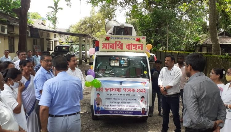 উত্তৰ লখিমপুৰ, ১১ জুলাই : বিশ্ব জনসংখ্যা দিৱস উপলক্ষে লখিমপুৰ জিলাৰ উপায়ুক্ত সুমিত সাত্তৱানে পৰিয়াল পৰিকল্পনা প্ৰতি সজাগতাৰ উদ্দেশ্যে প্ৰস্তুত কৰা সাৰথি বাহনখন সেউজীয়া পতাকা জোকাৰি শুভাৰম্ভ কৰে ।