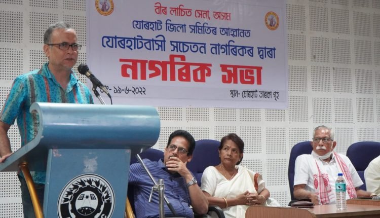 শতাব্দ প্ৰতিনিধি, যোৰহাট, ২১ জুনঃ বীৰ লাচিত সেনা অসম, যোৰহাট জিলা সমিতিৰ আহ্বানত যোৰহাটবাসী সচেতন নাগৰিকসকলৰ উপস্থিতিত ১৯ জুনত এখনি নাগৰিক সভা যোৰহাটৰ তাৰকাগৃহ প্ৰেক্ষাগৃহত অনুষ্ঠিত হয়। অসমৰ জাতীয় সংগীতেৰে আৰম্ভ হোৱা নাগৰিক সভাখনিত অৱসৰপ্ৰাপ্ত বিজ্ঞানী ড° পৰাণ বৰুৱাৰ প্ৰস্তাৱ অনুসৰি সভাপতি হিচাপে সভাখনি পৰিচালনা কৰে বিশিষ্ট চিকিৎসক ডা° বলীন খাৰঘৰীয়াই। উক্ত নাগৰিক সভাখনিত শিক্ষা তথা সংস্কৃতিৰ নগৰী হিচাপে খ্যাত যোৰহাটত বৰ্তমান বাঢ়ি অহা কিছুমান অসামাজিক কাৰ্যকলাপ, ড্ৰাগ্চৰ অবাধ প্ৰচলন, চোৰৰ চুৰিকাৰ্য, বিশুদ্ধ খোৱাপানীৰ অভাৱ, ৰাস্তা-ঘাটৰ দুৰৱস্থা, পাৰ্কিঙৰ সমস্যা, পদপথত খোজকাঢ়ি যোৱাৰ পৰিৱেশ নোহোৱা হোৱা, পদপথ বেদখল কৰি য’তে ত’তে বেহা মেলা, লেচী তথা বিভিন্ন চিকিউৰিটি এজেঞ্চিৰ কৰ্মচাৰীৰ অমানবীয় আচৰণ, যোৰহাট পুলিচ প্ৰশাসনৰ গা এৰা মনোভাৱ, টোকোলাই নৈৰ ওপৰত বেদখল, জাবৰ নিষ্কাষণৰ ক্ষেত্ৰত যোৰহাট পৌৰসভাৰ চৰম ব্যৰ্থতা, ব্যৱসায়িক প্ৰতিস্থানসমূহত যথোপযুক্ত পাৰ্কিঙৰ ব্যৱস্থা নথকা, দল সংগঠন তথা নাগৰিকসকলৰ দ্বাৰা প্ৰেৰণ কৰা স্মাৰক পত্ৰ তথা আবেদন সমূহক প্ৰশাসন যন্ত্ৰই গুৰুত্ব প্ৰদান নকৰা ইত্যাদি এশ এবুৰি সমস্যাৰ বিষয়ে আলোচনা কৰা হয়। সভাত যোৰহাটৰ বিদ্বৎ সমাজৰ গৰিষ্ঠসংখ্যক নাগৰিক উপস্থিত থাকি নিজ নিজ অভিজ্ঞতাৰ কথা ব্যক্ত কৰি বীৰ লাচিত সেনা, অসম, যোৰহাট জিলা সমিতিৰ এই পদক্ষেপৰ শলাগ লয়। লগতে সভাত আলোচনা হোৱা বিষয়সমূহৰ ওপৰত বীৰ লাচিত সেনা অসম, যোৰহাট জিলা সমিতিক নাগৰিকসকলৰ সৈতে একমত হ’লে পৰৱৰ্তী কাৰ্যসূচী সমূহত সক্ৰিয় সহযোগিতা আগবঢ়াব বুলি দৃঢ়তাৰে জনায়। বিশিষ্ট জ্যেষ্ঠ অধিবক্তাসকল ৰিণ্টু গোস্ৱামী, শেৱালি গগৈ দত্ত, সুদীপ্ত নয়ন গোস্ৱামী, বিশিষ্ট ব্যৱসায়ীসকল ৰাজকুমাৰ বৰঠাকুৰ, প্ৰবীৰ শইকীয়া, আনন্দ আগৰৱালা, পুতুল বৰুৱা, ৰূপম ঠাকুৰ, গৌতম বৰুৱা, হেপ্পী সিং, ৰাজকুমাৰ দুৱৰা, উদয় শংকৰ শৰ্মা, লিপিকা দাস, দেৱজিত দত্ত, সিদ্ধাৰ্থ শংকৰ দত্ত, মৃদুল হাজৰা, প্ৰকাশ বৰুৱা, বিশিষ্ট সমাজসেৱীসকল হেৰম্ব প্ৰসাদ ফুকন, সূৰ্য গগৈ, গোপাল দত্ত, ত্ৰিদিব দত্ত, নয়নজ্যোতি শৰ্মা, ৰিজ আহমেদ, ড° প্ৰণৱ চেতীয়া, দিলিপ বৰা, ঈশ্ৱৰ প্ৰসন্ন বৰদলৈ, অসম জাতীয়তাবাদী যুৱ-ছাত্ৰ পৰিষদৰ বাবু দত্তকে প্ৰমুখ্য কৰি ভালেসংখ্যক সচেতন নাগৰিকে যোৰহাটক পুনৰ সুন্দৰকৈ গঢ়ি তোলাৰ ঈচ্ছাৰে বক্তব্য আগবঢ়ায়। বীৰ লাচিত সেনা অসমৰ লগতে আন আন দল সংগঠন তথা অনুষ্ঠান প্ৰতিষ্ঠানৰ সকলো সৎ প্ৰচেষ্টাৰ লগত সহযোগিতা প্ৰকাশ কৰাৰ কথা উল্লেখ কৰিলে জ্যেষ্ঠ নাগৰিকসকলে। সভাৰ শেষত সভাপতিৰ অনুমতি সাপেক্ষে আহিবলগীয়া সময়ৰ সমস্যা তথা সমাধান সূত্ৰ সমূহৰ আলোচনা তথা সমাধানৰ বাবে এটা হোৱাটচ এপ গ্ৰুপ খুলিবৰ