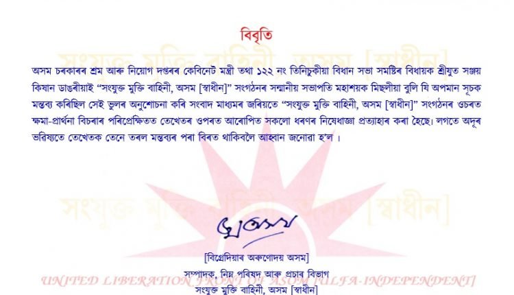 মন্ত্ৰী সঞ্জয় কিষাণৰ ওপৰত আৰোপিত আলফাৰ নিষেধাজ্ঞা প্ৰত্যাহাৰঅসম By শতাব্দ Last updated May 15, 2022 0 20 শ্বেয়াৰ কৰক 0 20 শ্বেয়াৰ কৰক FacebookTwitterGoogle+ReddItWhatsAppPinterestইমেইল