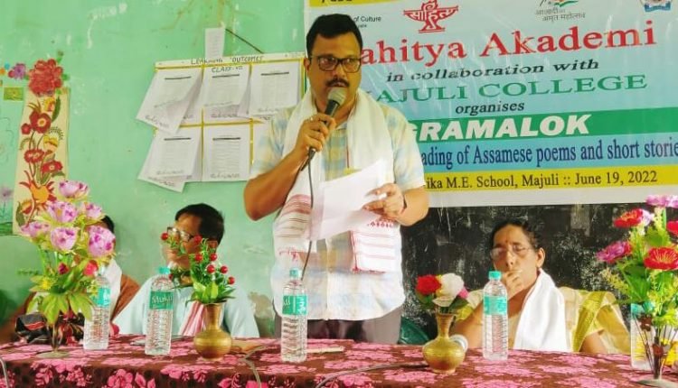 শতাব্দ প্ৰতিনিধি,মাজুলী,১৯ জুনঃ মাজুলী মহাবিদ্যালয়ৰ উদ্যোগত সাহিত্য অকাডেমিৰ ‘গ্ৰামালোক’ শীৰ্ষক সাহিত্য-পাঠ তথা মুখামুখি অনুষ্ঠান আজি অনুষ্ঠিত হৈ যায়। কমলাবাৰীৰ উপকণ্ঠ বৰটানীৰ কাণকুৰিকা মধ্য ইংৰাজী বিদ্যালয়ত দিনৰ ২ বজাৰ পৰা অনুষ্ঠিত এই বিশেষ সাহিত্য-পাঠ অনুষ্ঠানৰ শুভাৰম্ভ কৰা হয় আউনীআটী শাখা লেখিকা সমাৰোহৰ সদস্যাসকলৰ দ্বাৰা পৰিৱেশিত এটি সমবেত গীতেৰে। কাণকুৰিকা মধ্য ইংৰাজী বিদ্যালয়ৰ প্ৰধান শিক্ষক ৰাজেন দুৱৰীয়াই বন্তি প্ৰজ্বলন কৰা সভাখনিত সঞ্চালনা কৰে মাজুলী মহাবিদ্যালয়ৰ অধ্যক্ষ ড° দেৱজিৎ শইকীয়াই । মহাবিদ্যালয়ৰ অধ্যাপিকা মায়াশ্ৰী ডেকা হাজৰিকাই আঁত ধৰা অনুষ্ঠানত আদৰণি ভাষণ প্ৰদান কৰে মহাবিদ্যালয় পৰিচালনা সমিতিৰ সভাপতি নৰেন চন্দ্ৰ ঠাকুৰীয়াই। লেখকসকলৰ সাহিত্য-পাঠৰ আৰম্ভণিতে মহাবিদ্যালয় অভ্যন্তৰীণ মান নিশ্চিতকৰণ কোষৰ সমন্বয়ক ড° দেৱভূষণ বৰাই উপস্থিত সকলোকে সম্বোধি বক্তব্য আগবঢ়ায়। গ্ৰামাঞ্চলৰ লেখক-সাহিত্যিকসকলৰ মাজত সাহিত্যচর্চাৰ এক মধুৰ পৰিৱেশ গঢ় দিয়াৰ উদ্দেশ্যে সাহিত্য অকাডেমিৰ দ্বাৰা অনুষ্ঠিত কৰা ‘গ্ৰামালোক’ শীৰ্ষক সাহিত্য-পাঠৰ আজিৰ অনুষ্ঠানত মাজুলীৰ বিশিষ্ট লেখক-সাহিত্যিক ক্ৰমে অৱণী বৰাই স্বৰচিত চুটিগল্প ‘মৰিশালিৰ ভূত’, ইন্দুলেখা হাজৰিকাই স্বৰচিত কেইবাটাও অণুগল্প, ডিম্বেশ্বৰ ভূঞাই ভালেকেইটা স্বৰচিত কবিতা, কৰুণা বৰাই স্বৰচিত লেখা ‘অৰণ্য সংস্কৃতি’, মিনতি শইকীয়াই স্বৰচিত কেবাটাও কবিতা পাঠ কৰে। সঞ্চালকৰ মন্তব্যত অধ্যক্ষ ড° শইকীয়াই কয়,ভাৰতীয় সাহিত্যৰ সুশ্ৰী আৰু বিকাশৰ স্বাৰ্থত উৎসৰ্গিত সাহিত্য অকাডেমিয়ে ভাৰতীয় সকলো ভাষাৰ সাহিত্যৰ উন্নতিৰ হকে পদক্ষেপ গ্ৰহণ কৰি আহিছে আৰু গ্ৰামাঞ্চলৰ লেখক-সাহিত্যিকসকলক সৃষ্টিকৰ্মৰ প্ৰতি উৎসাহিত কৰাৰ অভিপ্রায়েৰে ‘গ্ৰামালোক’ৰ দৰে অনুষ্ঠান অনুষ্ঠিকৰণৰ যোগেদি এক মহৎ পদক্ষেপ গ্ৰহণ কৰিছে। অনুষ্ঠানৰ মতবিনিময় অনুষ্ঠানত মহাবিদ্যালয়ৰ প্ৰশাসনিক সমন্বয়ক হৰেন চন্দ্ৰ শইকীয়া, অধ্যাপক অনিল চন্দ্ৰ হাজৰিকা, ড° দুলাল হাজৰিকা, মাজুলী জিলা সাংবাদিক সন্থাৰ সম্পাদক দীপু বৰা, আউনীআটী শাখা লেখিকা সমাৰোহৰ সভানেত্ৰী সুৰ শইকীয়া হাজৰিকা, সম্পাদিকা মৃণালী দেৱী, কাণকুৰিকা মধ্য ইংৰাজী বিদ্যালয়ৰ শিক্ষক কুমুদ চন্দ্ৰ বৰা, শিক্ষয়িত্ৰী অমিয়া দেৱী বৰঠাকুৰ আদিয়ে অংশ গ্ৰহণ কৰে। শতাধিক দৰ্শক-শ্রোতা উপস্থিত থকা অনুষ্ঠানটোৰ শেষত শলাগৰ শৰাই আগবঢ়ায় অসমীয়া বিভাগৰ অধ্যাপিক তুলসী ৰাজখোৱাই।
