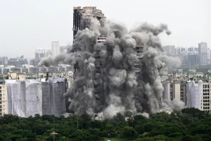 শতাব্দ বিশেষ প্ৰতিনিধি, ২৮ আগষ্টঃ মাত্ৰ ৯ ছেকেণ্ডতে দিল্লী নয়ডাৰ ১০০ মিটাৰ ওখ টুইন টাৱাৰ মাটিত মিহলি হৈ পৰিল। গোটেই আকাশখন ধূলিৰে আবৃত হৈ পৰিছিল।