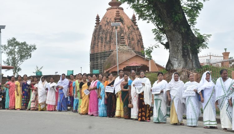সদৌ অসম মটক যুৱ ছাত্ৰ সন্মিলন শিৱসাগৰ জিলা সমিতিৰ উদ্যোগত শিৱসাগৰ উপায়ুক্ত কাৰ্যালয়ৰ সন্মুখত মানৱ শৃংখল কাৰ্যসূচীৰ দৃশ্য