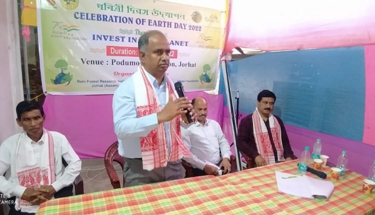 শতাব্দ প্ৰতিনিধি, যোৰহাট ,২২মাৰ্চ : পূব যোৰহাটৰ চটাইস্থিত বৰ্ষাৰণ্য গৱেষণা প্ৰতিষ্ঠানৰ উদ্যোগত আৰু বেচৰকাৰী সংস্থা দোকমোকালিৰ সহযোগত আজি দিনজোৰা কাৰ্যসূচীৰে ধৰিত্ৰী দিৱস পালন কৰা হয়।পদুমনি মাজগাৱৰ নামঘৰৰ প্ৰাংগনত অনুষ্ঠিত সভাখনত বৰ্ষাৰণ্য গৱেষণা প্ৰতিষ্ঠানৰ মুখ্য সঞ্চালক ড০ আৰ এছ জয়ৰাজে মুখ্য অতিথি ৰূপে ভাগ লৈ ধৰিত্ৰী দিৱসৰ তাৎপৰ্য ব্যাখ্যা কৰে। বেচৰকাৰী সংস্থা দোকমোকালিৰ সঞ্চালক কীৰ্তি বৰদলৈয়ে আতধৰা সভাখনত বৰ্ষাৰণ্য গৱেষণা প্ৰতিষ্ঠানৰ মুখ্য সঞ্চালক ড০ জয়ৰাজে মাটিক মানুহৰ শৰীৰৰ ছালৰ লগত তুলনা কৰি মানুহে ছালখন ঢাকি ৰাখিবৰ বাবে যেনেকৈ সাজপাৰ পৰিধান কৰে, ঠিক একেদৰে প্ৰকৃতিখন সৰ্বাংগসুন্দৰ কৰি তুলিবলৈ মূল্যবান বৃক্ষৰোপনৰ কৰিবলৈ সকলোকে আহ্বান জনায়। ইপিনে উক্ত সভাতে বৰ্ষাৰণ্য গৱেষণা প্ৰতিষ্ঠানৰ প্ৰধান বিজ্ঞানী ড০ ৰাজীৱ কুমাৰ কলিতাই বিশিষ্ট অতিথি হিচাপে উপস্থিত থাকি স্বনিয়োজনত বাঁহগছৰ সম্ভাৱনীয়তাৰ বিভিন্ন দিশ সমুহ দৃশ্য শ্ৰাব্য মাধ্যমেৰে সভাত উপস্থাপন কৰে। লগতে বাহগছৰ পৰা উৎপাদিত সামগ্ৰী সমূহৰ আন্তঃৰাষ্ট্ৰীয় বজাৰত আজিৰ তাৰিখত যথেষ্ট চাহিদা আছে বুলিও উল্লেখ কৰে। বৰ্ষাৰণ্য গৱেষণা প্ৰতিষ্ঠানৰ আনজন বিজ্ঞানী ড০ ৰাজীৱ কুমাৰ বৰা,পদুমনি মাজগাৱৰ গাওঁবুঢ়া সুশীল দত্ত আৰু বিশিষ্ট মৌ পালক পৰেশ কলিতা উপস্থিত থকা সভাখনত বৃক্ষৰোপণ কাৰ্যসূচী শুভাৰম্ভ কৰে বৰ্ষাৰণ্য গৱেষণা প্ৰতিষ্ঠানৰ সঞ্চালক ড০ আৰ এছ জয়ৰাজে।পূৱ যোৰহাটৰ ভালেসংখ্যক গণ্যমান্য ব্যক্তি উপস্থিত থকা সভাখনত শতাধিক মূল্যবান গছপুলি বিতৰণ কৰা হয়।