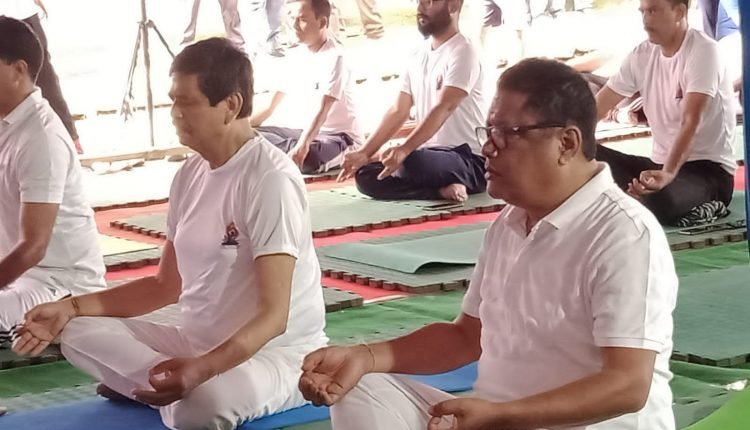 শতাব্দ প্ৰতিনিধি, যোৰহাট, ২১ জুন : সমগ্ৰ বিশ্বৰ লগতে আজি যোৰহাটতো জিলা প্ৰশাসন আৰু AYUSH,যোৰহাটৰ উদ্যোগত যোৰহাট ষ্টেডিয়াম প্ৰাংগণত “মানৱতাৰ বাবে যোগ” শীৰ্ষক অষ্টম সংখ্যক আন্তঃৰাষ্ট্ৰীয় যোগ দিৱস উদযাপন কৰা হয়।এই যোগ দিৱস উদযাপনৰ যোগ প্ৰদৰ্শন অনুষ্ঠানত অসম চৰকাৰৰ শিক্ষামন্ত্ৰী তথা যোৰহাট জিলাৰ অভিভাৱক মন্ত্ৰী ডাঃ ৰণোজ পেগুৱে মুখ্য অতিথি হিচাপে অংশগ্ৰহণ কৰে। শিক্ষামন্ত্ৰী গৰাকীয়ে সকলোকে যোগ দিৱসৰ শুভেচ্ছা জনোৱাৰ লগতে সৰুৰে পৰা ছাত্ৰ-ছাত্ৰীসকলক যোগাভ্যাসৰ অনুশীলন কৰোৱাৰ প্ৰচেষ্টা কৰাটো অতি জৰুৰী বুলি ভাষণ প্ৰসংগত কয়। লগতে কয় যে, যোগাভ্যাস আৰু আসন, স্বাস্থ্য আৰু সফলতাৰ চাবি কাঠি। গতিকে,সৰুতেই যোগাসনৰ অনুশীলনৰ প্ৰতি ছাত্ৰ ছাত্ৰীক আগ্ৰহী কৰি তুলিব পাৰিলে নিৰোগী হৈ থকাৰ উপৰি মন প্ৰফুল্লিত হৈ থাকিব আৰু যিকোনো কামত সহজেই মন বঢ়োৱাব পাৰিব। জিলাখনৰ বিভিন্ন যোগ অনুষ্ঠান(কেন্দ্ৰ)সমূহে অংশগ্ৰহণ কৰা আজিৰ এই যোগ দিৱসৰ কাৰ্যসূচীত জিলা উপায়ুক্ত অশোক কুমাৰ বৰ্মনে যোগাসনে মানুহৰ শৰীৰ মন সুস্থ কৰি ৰখাৰ লগতে বেমাৰৰ পৰাও দূৰত ৰাখে বুলি মন্তব্য কৰি সকলোকে যোগ অভ্যাসটো নিয়মীয়া কৰিবলৈ আহ্বান জনায়। যোগ দিৱসৰ অনুষ্ঠানত আৰক্ষী অধীক্ষক মোহনলাল মীনা, জিলা উন্নয়ন আয়ুক্ত অধৰ ভূঞা, জিলা পৰিষদৰ মুখ্য কাৰ্যৱাহী বিষয়া প্ৰনব কুমাৰ বৰা, অতিৰিক্ত উপায়ুক্ত দামোদৰ বৰ্মন, জিলা ক্ৰীড়া বিষয়া স্বাৰ্থে টেৰাং, পাঞ্জাৱ নেচনেল বেংকৰ বিষয়ববীয়া, অগ্ৰণী মহিলা সংঘৰ বিষয়ববীয়াসকল, জিলা প্ৰশাসনৰ অন্যান্য বিষয়া কৰ্মচাৰীসকল,বিভিন্ন বিভাগৰ বিষয়া কৰ্মচাৰীসকল, শিক্ষানুষ্ঠানৰ ছাত্র-ছাত্ৰী আৰু স্থানীয় ৰাইজে অংশগ্ৰহণ কৰে।