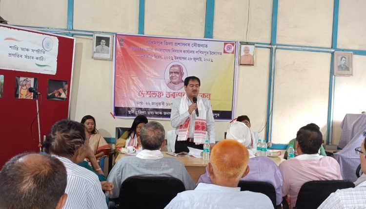 শতাব্দ প্ৰতিনিধি, লখিমপুৰ ২৮ জুলাই: লখিমপুৰ জিলা প্ৰশাসনৰ সৌজন্যত তথ্য আৰু জনসংযোগ বিভাগৰ উদ্যোগত আজি লখিমপুৰ জনসংযোগ বিষয়াৰ কাৰ্য্যালয়ত উদযাপন কৰা হয় ৮৩ সংখ্যাক দেশভক্তি দিৱস । আজিৰ দেশভক্তি দিৱসৰ কাৰ্য্যসূচী জিলা উন্নয়ন বিষয়া মনোজ কুমাৰ বৰুৱাই উদ্বোধন কৰে । জিলা তথ্য আৰু জনসংযোগ বিষয়া মন্দিৰা চায়েঙীয়াই আঁত ধৰা সভাখনত তৰুণৰাম ফুকনৰ জীবনাদৰ্শৰ ওপৰত আলোকপাত কৰি বক্তাসকলে উত্তৰ প্ৰজন্মৰ বাবে অধিক প্ৰচাৰ-প্ৰসাৰৰ আহ্বন জনায়। এই কাৰ্য্যসূচীত সংবাদকর্মী, জ্যেষ্ঠ নাগৰিক সন্থাকে ধৰি বিভিন্ন সংগঠন উপস্থিত থাকে । উল্লেখ্য যে, ৰাজ্যিক কেবিনেটত দেশভক্ত তৰুণ ৰাম ফুকনৰ মৃত্যু দিৱসটি দেশভক্তি দিৱস হিচাপে ৰাজ্যজুৰি পালন কৰাৰ সিদ্ধান্ত গ্ৰহণ কৰা হৈছিল।
