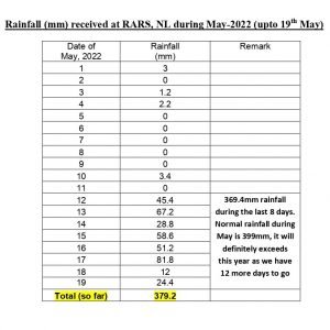প্ৰবল আৰু নেৰানেপেৰা বৰষুণে ৰাজ্যত ভয়াৱহ পৰিস্থিতি সৃষ্টি কৰাৰ সময়তে লখিমপুৰত যোৱা ৮ টা দিনত অবিশ্বাস্য পৰিমাণৰ বৰষুণ হৈছে।আঞ্চলিক কৃষি গৱেষণা কেন্দ্ৰ, উত্তৰ লখিমপুৰে জনোৱা মতে ১-১৯ মে’লৈকে উত্তৰ লখিমপুৰত মুঠ ৩৭৯.২ মিলি মিটাৰ বৰষুণ হয়। ইয়াৰে ১২-১৯ মে’লৈকে ৮ টা দিনত ৩৬৯.৪ মিলি মিটাৰ বৰষুণ হয়। এয়া নিশ্চিতভাবেই অত্যধিক।উল্লেখ্য যে মে মাহটোত লখিমপুৰত স্বাভাৱিক পৰিমাণৰ বৰষুণ হয় ৩৯৯ মিলি মিটাৰ। কিন্তু মাহটো শেষ হবলৈ ১২ দিন বাকী থকা অৱস্থাত ১৯ টা দিনত মুঠ ৩৭৯.২ মিলি মিটাৰ আৰু শেষৰ ৮ টা দিনত ৩৬৯.৪ মিলি মিটাৰ বৰষুণ হোৱাটো “নিশ্চিতভাবেই অত্যধিক” বুলি সদৰী কৰিছে কেন্দ্ৰটোৱে।
