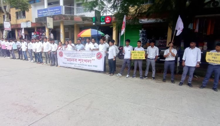লখিমপুৰত ‘মানৱ শৃংখল’ৰে উত্তৰ লখিমপুৰ পৌৰসভাৰ বিৰুদ্ধে উত্তাল প্ৰতিবাদ আছুৰ