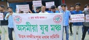 লখিমপুৰত অসমীয়া যুৱ মঞ্চৰ প্ৰতিবাদ