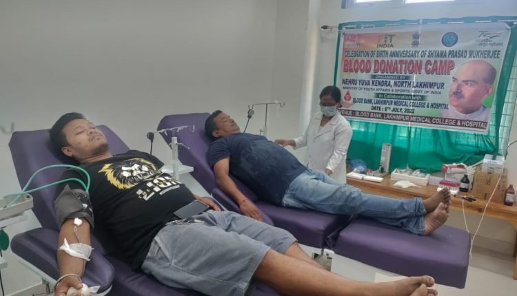 উত্তৰ লখিমপুৰ,৬ জুলাইঃআজি শ্যামা প্ৰসাদ মুখাৰ্জীৰ জন্ম দিন উপলক্ষে উত্তৰ লখিমপুৰ নেহৰু যুৱ কেন্দ্ৰৰ উদ্যোগত আৰু লখিমপুৰ চিকিৎসা মহাবিদ্যালয়ৰ ব্লাড বেংকৰ সহযোগত ৰক্ত দানৰ বিষয়ে ৰাইজৰ মাজত সজাগতা বৃদ্ধি কৰাৰ উদ্দেশ্যে লখিমপুৰ চিকিৎসা মহাবিদ্যালয়ত এক ৰক্ত দান শিবিৰ আৰু সজাগতা সভা অনুষ্ঠিত হৈ যায়। ” ৰক্ত দান মহান দান” শ্লোগানেৰে অনুষ্ঠিত কৰা ৰক্ত দান শিবিৰত জিলাখনৰ অৰ্ধ শতাধিক যুৱক-যুৱতীয়ে ৰক্ত দান কৰে। ৰক্ত দান শিবিৰত অনুস্থিত কৰা সজাগতা শিবিৰত লখিমপুৰ জিলাৰ অতিৰিক্ত উপায়ুক্ত গীতালি দুৱৰা উপস্থিত থাকি ৰক্ত দাতা সকলক উৎসাহিত কৰে।সভাত লখিমপুৰ জিলা বিজেপিৰ সভাপতি ফনিধৰ বৰুৱাই ৰক্ত দানৰ পৰা হোৱা বিভিন্ন উপকাৰ সমূহৰ ওপৰত বক্তব্য প্ৰদান কৰে।লখিমপুৰ চিকিৎসা মহাবিদ্যালয়ৰ উপ অধীক্ষক ড° নিখিল কাকতিয়ে ৰক্ত দানৰ বিষয়ে বিভিন্ন সময়ত চলি অহা অপপ্ৰচাৰ আৰু ইয়াৰ প্ৰকৃত সত্য সম্পৰ্কে সভাত ভাষণ প্ৰদান কৰে।ইয়াৰ উপৰি সভাত উপস্থিত থাকে লখিমপুৰ চিকিৎসা মহাবিদ্যালয়ৰ ব্লাড বেংকৰ ইন চাৰ্জ ডাঃ নিতুমনি খাখলাৰী,লখিমপুৰ জিলা নেহৰু যুৱ কেন্দ্ৰৰ যুৱ সমন্বয়ক সুজাতা ভৌতিক,লখিমপুৰ জিলা বিজেপিৰ সম্পাদক হিতেশ বৰা, কাৰ্যালয় সম্পাদক জিতেন দত্ত, লখিমপুৰ জিলা বিজেপিৰ পল্লৱী গোহাঁই বৰদলৈ,দুল শইকীয়া, অচ্যুত পাৱে,সমাজ সেৱক ৰূপমজ্যোতি চেতিয়া আৰু উত্তৰ লখিমপুৰ নেহৰু যুৱ কেন্দ্ৰৰ ৰাষ্ট্ৰীয় স্বেচ্ছাসেৱক সকল ।