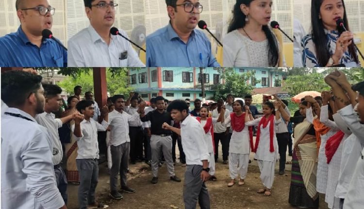 শতাব্দ প্ৰতিনিধি লখিমপুৰ: ৩১ মে’: লখিমপুৰ বাণিজ্য মহাবিদ্যালয়ত আজি জিলা ন্যায়িক সেৱা প্ৰাধিকৰণ আৰু জিলা সমাজ কল্যাণ বিভাগৰ জিলা পৰ্যায়ৰ মহিলা কেন্দ্ৰৰ মহিলা শক্তি কেন্দ্ৰৰ সহযোগত বিশ্ব ধঁপাত বিৰোধী দিৱস পালন কৰা হয়। সেই উদ্দেশ্যে আজি পুৱাৰ ভাগত মহাবিদ্যালয়ৰ পৰা ধঁপাত বিৰোধী এক সমদল বাহিৰ কৰি মহাবিদ্যালয়ৰ ছাত্ৰ-ছাত্ৰী সকলে জিলা ন্যায়িক চৌহদৰ সন্মুখত ধঁপাত বিৰোধী এক বাটৰ নাট পৰিবেশন কৰে। বাটৰ নাট অনুষ্ঠানৰ ব্যৱস্থাপনাত সহায় কৰে অধ্যাপক বহ্নিশিখা বৰদলৈ, ড° হৰিণী পাটোৱাৰী, ড° বিভা দত্ত, দীপজান গোহাঁই, পংকজ লোচন দাস আদিয়ে। ইয়াৰ পিছতে মূল বিষয়ক এক সভা লখিমপুৰ বাণিজ্য মহাবিদ্যালয়ত অনুষ্ঠিত হয়। অধ্যক্ষ ড° লোহিত হাজৰিকাৰ পৌৰোহিত্যত অনুষ্ঠিত সভাৰ উদ্দেশ্য ব্যাখ্যা কৰে লখিমপুৰ জিলা ন্যায়িক সেৱা প্ৰাধিকৰণৰ সম্পাদক অনুপ খানালে। সভাত সমল ব্যক্তি হিচাপে অংশগ্ৰহণ কৰে লখিমপুৰ চিকিৎসা মহাবিদ্যালয়ৰ ডাঃ ছামিউল আখতাৰ বৰবাৰাই। অনুষ্ঠানত ধঁপাত বিৰোধী কেইবাখনো চুটি ছবি প্ৰদৰ্শন কৰা হয়। কুকি বৰুৱাৰ শলাগৰ শৰাইৰে সামৰণি পৰা অনুষ্ঠানটিত আঁত ধৰে প্ৰাঙ্গণা বৰাই।