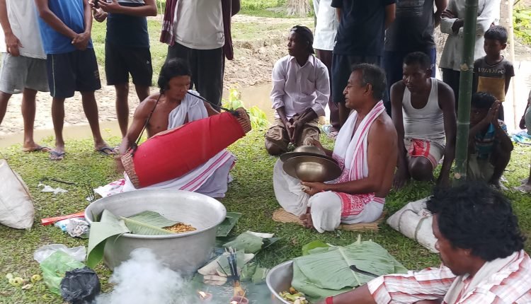 শতাব্দ প্ৰতিনিধি, তেজপুৰ,১৯ জুলাইঃ দুটাকৈ বানে সৰ্বস্ৰান্ত কৰাৰ পিছত বৰ্তমান খৰাঙে ৰাজ্যৰ কৃষক সকলৰ অৱস্থা পানীত হাঁহ নচৰাৰ দৰে কৰিছে।সম্প্ৰতি শোণিতপুৰৰ বিভিন্ন অঞ্চলত দুবাৰকৈ বানে সৰ্বস্ৰান্ত কৰা কৃষকে কঠীয়া ৰোপন কৰিবলৈ গৈ প্ৰয়োজনীয় পানীৰ অভাৱত হতাশ হ’বলগীয়া হোৱাই নহয় তেজপুৰত আজি একাংশ কৃষকে নৈৰ পাৰত নাম গাই,ভোগ দি নেদেখাজনৰ ওচৰত পথাৰত পানীৰ বাবে প্ৰাৰ্থনা জনাবলগীয়া হৈছে। উল্লেখযোগ্য যে,তেজপুৰৰ নিকটৱৰ্তী বিহগুৰি, বাঁহবাৰী মৌজা অন্তৰ্গত বিভিন্ন অঞ্চলৰ পথাৰসমূহ পানীৰ অভাৱত শুকাই গৈছে আৰু ইয়াত সম্প্ৰতি কঠীয়া পাৰিব পৰা অৱস্থাই নোহোৱা হৈছে। জিলাখনৰ বাঁহবাৰী মৌজাৰ তথা তেজপুৰৰ নিকটৱৰ্তী নতুন ঘগৰা, মণি ঝাৰণি, বেছেৰীয়া পাম, পুৰণা ঘগৰা, বৰচন, পাহৰণি, মোৱামাৰী, গণকচুবুৰী, ডেকাচুবুৰী, বেতনি, বৰাচুবুৰী, ছিঙাচুবুৰি, থিয়আটি, গুতিবৰা চুবুৰী, বান্দৰমাৰীকে ধৰি কুৰিখনৰো অধিক গাঁৱৰ কৃষকৰ মাজত হাহাকাৰ অৱস্থাৰ উদ্ভৱ হৈছে পথাৰত পানীৰ অভাৱত। উল্লেখযোগ্য যে,এই কৃষি প্ৰধান অঞ্চলসমূহৰ পথাৰত আজিলৈকে জলসিঞ্চন ব্যৱস্থাৰ সুবিধা কৃষকসকলে লাভ কৰিবলৈ সক্ষম নহ’ল। এনে পৰিস্থিতত উপায়ন্তৰ হোৱা কৃষক ৰাইজে সমীপৰ ঘগৰা নৈৰ পাৰত আজি পুৱা প্ৰায় আঠ বজাত সমবেত হৈ নামপ্ৰসংগ কৰাৰ লগতে ঘগৰা নৈত ভোগ দি কৃষকসকলে তেওঁলোকৰ পথাৰত প্ৰয়োজনীয় পানীৰ বাবে প্ৰাৰ্থনা জনায়। উল্লেখযোগ্য যে,কৃষি নিৰ্ভৰ অৱশিষ্ট অঞ্চলসমূহৰ অন্যতম এই গাঁওসমূহৰ কৃষক ৰাইজে ধান খেতিৰ বাবে পথাৰত পানীৰ অভাৱ হ’লে পৰম্পৰাগত ভাবে ঘগৰা নৈৰ পাৰত নাম কীৰ্ত্তন কৰি আহিছে। সুদীৰ্ঘকালৰ পাছত এইবাৰ এনে জলশংকতৰ বাবেই আজি পুৱা গণকচুৰীৰ, ডেকাচুৰীৰ, থিয়আটি, ঘগৰাকে ধৰি কেইবাখনো গাঁৱৰ ৰাইজে সমুহীয়া ঘগৰা নৈৰ পাৰত পৰম্পৰাগত ভাবে নাম কীৰ্ত্তন কৰে। উল্লেখযোগ্য যে,ঘগৰা নৈখনৰ সোঁত আন নৈতকৈ ব্যতিক্ৰমী ভাবে পশ্চিমৰ পৰা পূবলৈহে প্ৰবাহিত হয়।ৰাইজে নাম কীৰ্ত্তন সমাপন কৰি নৈত ভোগ অৰ্পণ কৰে। উল্লেখযোগ্য যে, বৃহত্তৰ অঞ্চলসমূহৰ পথাৰ পানীৰ অভাৱত চিৰাল ফাট দিছে। অঞ্চলটোৰ এগৰাকী কৃষক সাংবাদিক মনোজ কুমাৰ শইকীয়াই কয় যে,যি সকল কৃষকৰ পুখুৰী আছে তেওঁলোকে পুখুৰীৰ পানী পথাৰৰ কিছু অংশলৈ বোৱাই নি সামান্য একোটা অংশত কঠীয়া ৰোপন কৰিব পাৰিছে। শইকীয়াই এনেদৰে এই পৰ্যন্ত তেওঁৰ প্ৰায় ৫০বিঘা মাটিৰ ভিতৰত আধা অংশতো কঠীয়া ৰোপন কৰিব পৰা নাই পানীৰ অভাৱতে। একেদৰেই আন সকল কৃষকেও মূৰে কঁপালে হাত দিবলগীয়া হোৱাত উপায়ন্তৰ হৈ আজি ঘগৰা নৈত ভোগ দিয়ে যাতে তেওঁলোকৰ পথাৰত এই নৈখনৰ জৰিয়তেই খেতি উপযোগী পানী লাভ কৰিব পাৰে। উল্লেখযোগ্য যে,অঞ্চলসমূহত ঘগৰা নৈৰ বানে দুবাৰকৈ সকলো খেতি পথাৰ বুৰাই পেলোৱাত স্থানীয় কৃষকসকলৰ কঠীয়া নষ্ট হয় আৰু ই
