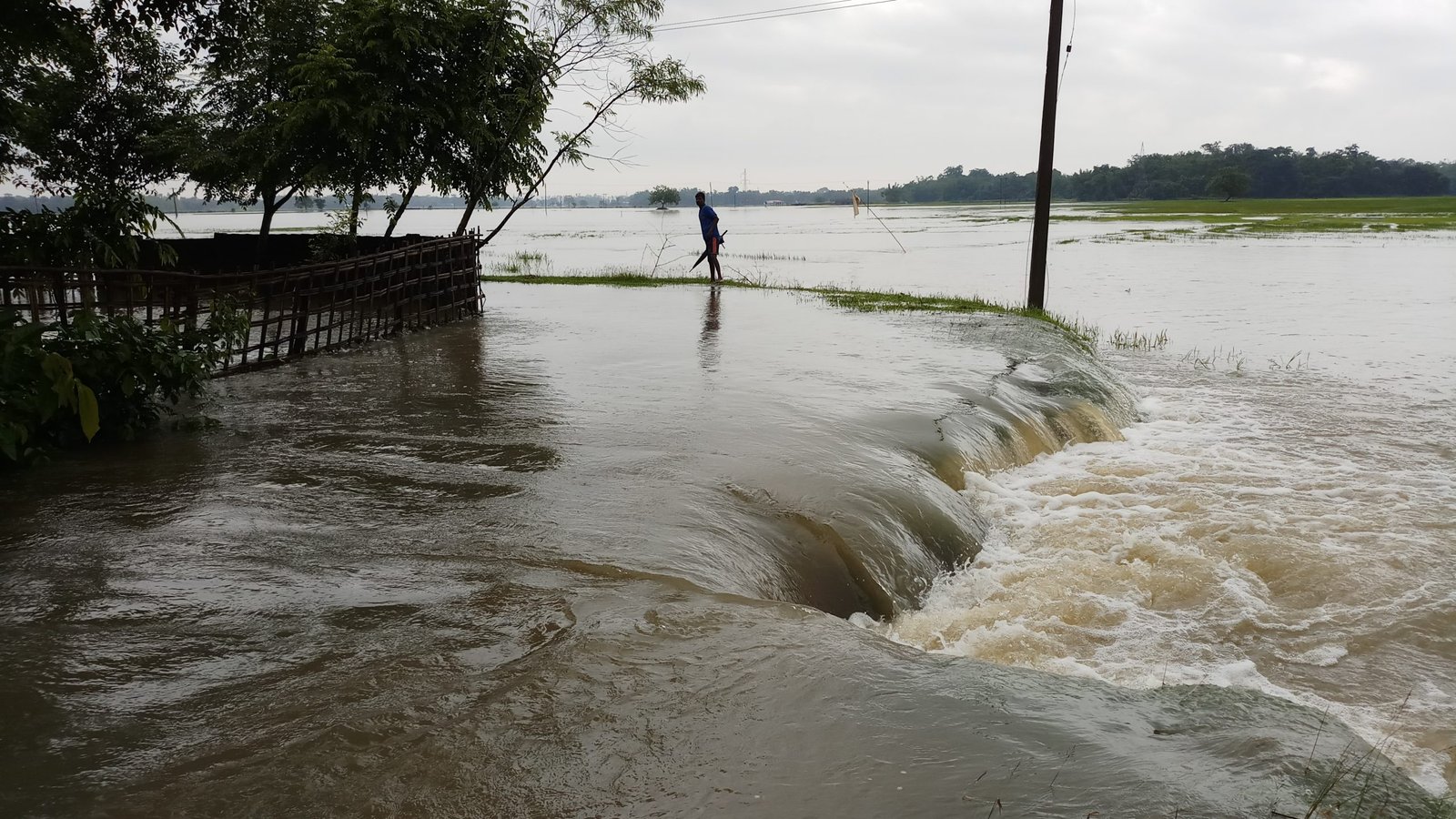 শতাব্দ প্ৰতিনিধি, তেজপুৰ, ১৮জুনঃ সংহাৰী বানে বিস্তৰ ক্ষতি সাধন কৰা শোণিতপুৰৰ তথা তেজপুৰৰ নিকটৱৰ্তী বাঁহবাৰী ডেকাচুবুৰীত কালি বিয়লি জিন্তু মুণ্ডা(১০)নামৰ এক কিশোৰৰ সলিল সমাধি ঘটিছে। ঘগৰা নৈৰ পাৰৰ অঞ্চলটোত বানে বিস্তৰ ক্ষতিসাধন কৰাৰ বিপৰীতে পথাৰ তথা নৈৰ মাজত চিনচাব নোহোৱা পৰিস্থিতিৰ উদ্ভৱ হৈছে। কালি বিয়লি জিন্তু ঘগৰা নৈত পিচলি পৰি যায়। স্থানীয় একাংশ লোকে কিশোৰটিক পানীৰ পৰা উদ্ধাৰ কৰি চিকিৎসালয়লৈ আনে যদিও কিশোৰটিৰ মৃত্যু ঘটে। উল্লেখযোগ্য যে, শোণিতপুৰত গাভৰু, ডিপোটা, বেলশিৰি, মানশিৰি, জৰাসৰ নৈৰ পানীয়ে বিস্তৰ ক্ষতি সাধান কৰিছে। ইতিমধ্যে বৈঠাভঙা, বাঁহবাৰী আদিত একাধিক বিদ্যালয় বানৰ বাবে বন্ধ হৈ পৰিছে। আনহাতে ঠেলামৰাত ১৫নম্বৰ ৰাষ্ট্ৰীয় পথত থকা এখন পকী দলং বানৰ বাবে বহি গৈছে আৰু এই দলংখন যিকোনো সময়তে খহি পৰাৰ আশংকা বৃদ্ধি পাইছে। বেলশিৰি নৈৰ প্ৰৱল সোঁতত খহিবলৈ আৰম্ভ কৰা দলংখন ৰক্ষা কৰাৰ বাবে লোকনিৰ্মাণ বিভাগে বাঁহ আদি বান্ধি চেষ্টা চলাইছে যদিও যিকোনো মূহুৰ্ততে অঘটন ঘটিব পাৰে। এনে হ’লে তেজপুৰ ঢেকিয়াজুলি তথা দৰঙৰ সতে যোগাযোগ বিচ্ছিন্ন হৈ পৰাটো নিশ্চিত। আনহাতে জিলাখনৰ গাভৰু গাওঁ পঞ্চায়ত অন্তৰ্গত অঞ্চলতো বানে বিধ্বংসী ৰূপ লৈছে। একেদৰে বৰছলাৰ ভঙামন্দিৰ অঞ্চলতো বান আৰু খহনীয়াই স্থানীয় ৰাইজৰ বিস্তৰ ক্ষতি সাধন কৰিছে। আনহাতে, বালিপৰাস্থিত বালিপৰা সমবায় সমিতিত মজুত থকা যথেষ্ট পৰিমানৰ চাউলো বিনষ্ট কৰে। উল্লেখযোগ্য যে, ৰাষ্ট্ৰীয় খাদ্য সুৰক্ষা যোজনাৰ অধীনত আৱণ্টিত চাউলৰ ভিতৰত তিনিশ কুইন্টল চাউল ইয়াত মজুত আছিল আৰু সেই চাউল সম্প্ৰতি বানত নষ্ট হৈছে। উল্লেখযোগ্য যে, সমবায় সমিতিখনৰ কোঠালিত জৰাসৰৰ বাঢ়নি পানী প্ৰৱেশ কৰাত ইয়াত থকা চাউলৰ বস্তাসমূহ ভিজি এই বৃহৎ পৰিমানৰ চাউল বিনষ্ট কৰে। আনহাতে, জীয়াভৰলী নৈৰ প্ৰৱল বান গৰাখহনীয়াই তেজপুৰৰ বিভিন্ন অঞ্চলত ভয়াৱহ পৰিস্থিতিৰ সৃষ্টি কৰিছে। এনে সময়তে মানশিৰি আৰু জৰাসৰ নৈৰ প্ৰলয়ংকৰী বানে তেজপুৰ বিশ্ববিদ্যালয়ৰ কাষৰীয়া একাধিক গাঁও অঞ্চলৰ সহস্ৰাধিক বাসগৃহ আৰু কৃষি ভূমি বুৰাই পেলোৱাত ৰাইজ অতিকৈ চিন্তিত হৈ পৰিছে। উল্লেখ্য যে মানশিৰি আৰু জৰাসৰ নৈৰ বানে ইতিমধ্যে তেজপুৰ চহৰৰ নিকটৱৰ্ত্তী বামুনগোলা, মানশিৰি, নপাম আৰু ভালুকঝাৰনি অঞ্চলত থকা লোক নিৰ্মাণ বিভাগৰ কেইটাবাটাও পথ ছিঙি পেলাইছে। সেই অনুসৰি আজি নৈ দুখনৰ প্ৰৱল বাঢ়নী পানীয়ে ভালুকঝাৰণি, শলমৰা, বোকাজান, সোণাবিল, কচুবিল আৰু ৰূপকুৰীয়া অঞ্চলৰ লগতে নপাম আৰু নিজ গৰৈমাৰী পঞ্চায়তৰ বৃহৎ এলেকা সম্পূর্ণৰূপে জলমগ্ন কৰিছে। ইফালে বানপানীয়ে সহস্ৰাধিক পৰিয়ালৰ বাসগৃহ বুৰাই পেলোৱাত আশ্ৰয়ৰ বাবে বানাক্ৰান্ত পৰিয়ালবোৰৰ মাজত হাহাকাৰৰ সৃ