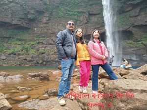 ২৮ ডিচেম্বৰ, ২০২১ পুৱা ৬মান বজাত প্ৰত্যেকেই নিজৰ নিজৰ গৰম কাপোৰ আৰু অন্যান্য প্ৰয়োজনীয় সামগ্ৰী সমূহ বেগত ভৰাই শ্বিলঙলৈ বুলি যাত্ৰা কৰিলোঁ। সকলোৰে মনত এটা উৎকণ্ঠা আছিল যে শ্বিলঙত এইবাৰ বৰফ পৰিছে। গোটেইবোৰে খুব ফুৰ্তি কৰিব পাৰিব। বিশেষকৈ আমাৰ কন্যা “কুঁহি”য়ে বৰফ লৈ খেলিব, “snow man” বনাব ইত্যাদি ইত্যাদি ভাৱি থৈছিল। বাটত যাওঁতে সকলোৰে চিনাকী ‘জিভা’ নামৰ ৰেষ্টুৰেণ্ট খনত অতি তৃপ্তিৰে পুৱাৰ আহাৰ গ্ৰহণ কৰি আৰু পুনৰ আমাৰ গাড়ীৰ গতি এইবাৰ মনোমোহা জয়ন্তীয়া পাহাৰৰ ফালে আগবাঢ়িল। লক্ষ্য আছিল এটা নতুন ৱাটাৰ ফ’লছ্ , ‘ফি’ ‘ফি’ চোৱাৰ।এই স্থান পাবলৈ শ্বিলঙৰ পৰা জোৱাইলৈ প্ৰায় ৬০ কিলোমিটাৰ যাত্ৰা কৰাৰ পাছত পুনৰ তাৰপৰা ২০ কিলোমিটাৰ মান যাত্রা কৰি “জেৰিয়ান” নামৰ এখন সৰু চহৰ পায়। এই বাটেদি “ডউকী”লৈও যাব পাৰি। প্ৰায় ১২.৩০ বজাত আমি জেৰিয়ান পালোগৈ। তাতে উপস্থিত হৈ আমি এখন সৰু নদী প্ৰত্যক্ষ কৰিলোঁ আৰু নদীখনৰ পাৰত কিছুমান ৰং-বিৰঙৰ টেণ্ট দেখা পালোঁ। বহু দূৰ দূৰণিৰ পৰা অহা পৰ্যটক সকলে বোধকৰোঁ এই টেণ্টবোৰতেই নিশাটো কটাই পুৱাই “ফি ‘ফি ফলছ্” চাবলৈ যাত্ৰা কৰে। এখন সৰু টুলুঙা নাৱেৰে পৰ্যটক সকলক নাৱৰীয়া এজনে পাৰ কৰাই দিয়ে আৰু পুনৰ উভতনি যাত্ৰাত এই পাৰলৈ আনি দিয়াৰ বাবদ মুঠ এশ থকা সংগ্রহ কৰে। নদীখন পাৰ হওঁতে লক্ষ্য কৰিছিলো যে, ইয়াৰ নীল ৰঙৰ পানীখিনি ইমানেই স্পষ্ট আৰু স্বচ্ছ যে নদীখনৰ একেবাৰে তলীলৈকে দেখা পোৱা যায়। নদীখন পাৰ হৈ গন্তব্য স্থান পাবলৈ আমি প্ৰায় ৫-৬ কিলোমিটাৰ মান (১ ঘণ্টা মান সময়) পাহাৰৰ ওপৰলৈ খোজ কাঢ়িলো আৰু তাৰ পৰা পুনৰ জলপ্ৰপাতটো চাবলৈ এক দু:সাহসিক যাত্ৰাৰে আমি পাহাৰৰ তললৈ প্ৰায় আধা ঘণ্টাতকৈ বেছি সময় বিপদ সংকুল অকোৱা পকোৱা বাটেৰে যাত্ৰা কৰিলোঁ। যাত্ৰা কৰোঁতে মনত এটা সাংঘাতিক ভয় ভাৱ লৈ খোজ কাঢ়িছিলো, যিহেতু ভৰি পিছল খালেই একেবাৰে পাহাৰৰ তলিত পৰিব লগা হলহেঁতেন। মই পৰিয়ালৰ সকলোকে অতি সাৱধানেৰে খোজ কাঢ়িবলৈ কাঢ়া নির্দেশ দিলোঁ। নহলে যে বিপদ অনিবাৰ্য। যাত্ৰা কালত আমাৰ পানী প্ৰায় শেষ হৈ গৈছিল আৰু খুব ভোকো লাগিছিল। কিন্তু, ফি্ ফি্ ফলছ্ত উপস্থিত হৈ তাৰ নান্দনিক আৰু চিত্তাকৰ্ষক দৃশ্য উপভোগ কৰি ভোক ক’লৈ আঁতৰি গৈছিল কবই নোৱাৰিলোঁ। সঁচাকৈ, প্ৰকৃতিৰ সৃষ্টি এই মনোমোহা দৃশ্য উপভোগ কৰা জনেহে একমাত্ৰ অনুভৱ কৰিব পাৰে এই ভ্ৰমণত লাভ কৰা মানসিক আনন্দ আৰু প্ৰশান্তি।