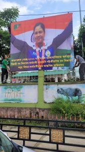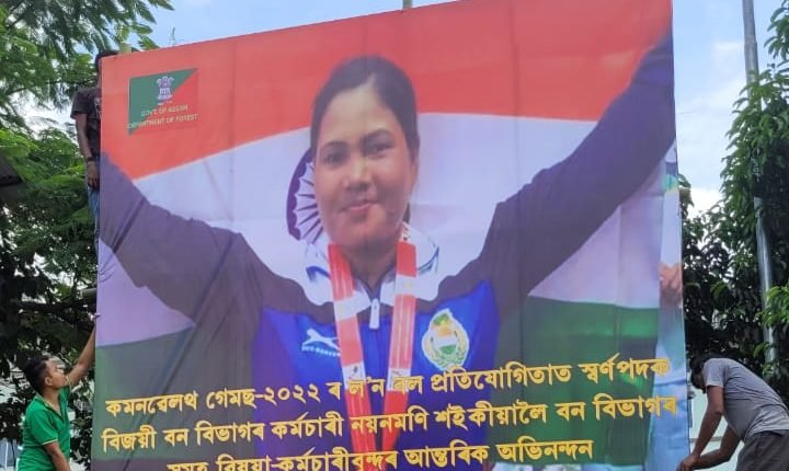 কমনৱেলথ গেমছত লন বল প্ৰতিযোগিতাত স্বৰ্ণ পদক প্ৰাপ্ত নয়নমণি শইকীয়াক লৈ এতিয়া সমগ্ৰ অসমবাসীৰ লগতে বন বিভাগৰ বিষয়া-কৰ্মচাৰীও উৎফুল্লিত। আজি বন বিভাগে সতীৰ্থ কৰ্মচাৰীগৰাকীলৈ অভিনন্দন যাঁচি গুৱাহাটীত আঁৰিলে বিশাল হৰ্ডিং। উল্লেখ্য় যে নয়নমণি বন সুৰক্ষা বেটেলিয়নত গুৱাহাটীত কৰ্মৰত।