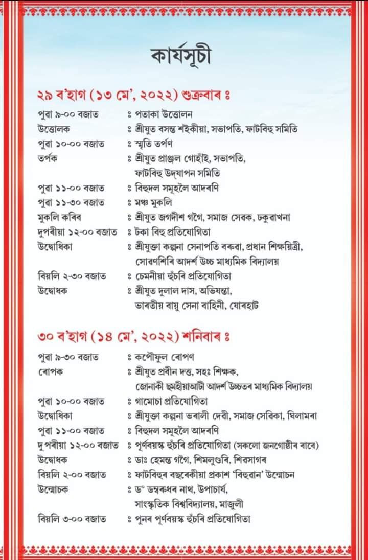 ১৩,১৪ আৰু ১৫ মেত ঐতিহ্যমণ্ডিত ঢকুৱাখনাৰ ফাটবিহু ( সম্পূৰ্ণ কাৰ্যসূচী)অসমসংস্কৃতি By শতাব্দ Last updated May 7, 2022 0 84 শ্বেয়াৰ কৰক 0 84 শ্বেয়াৰ কৰক FacebookTwitterGoogle+ReddItWhatsAppPinterestইমেইল